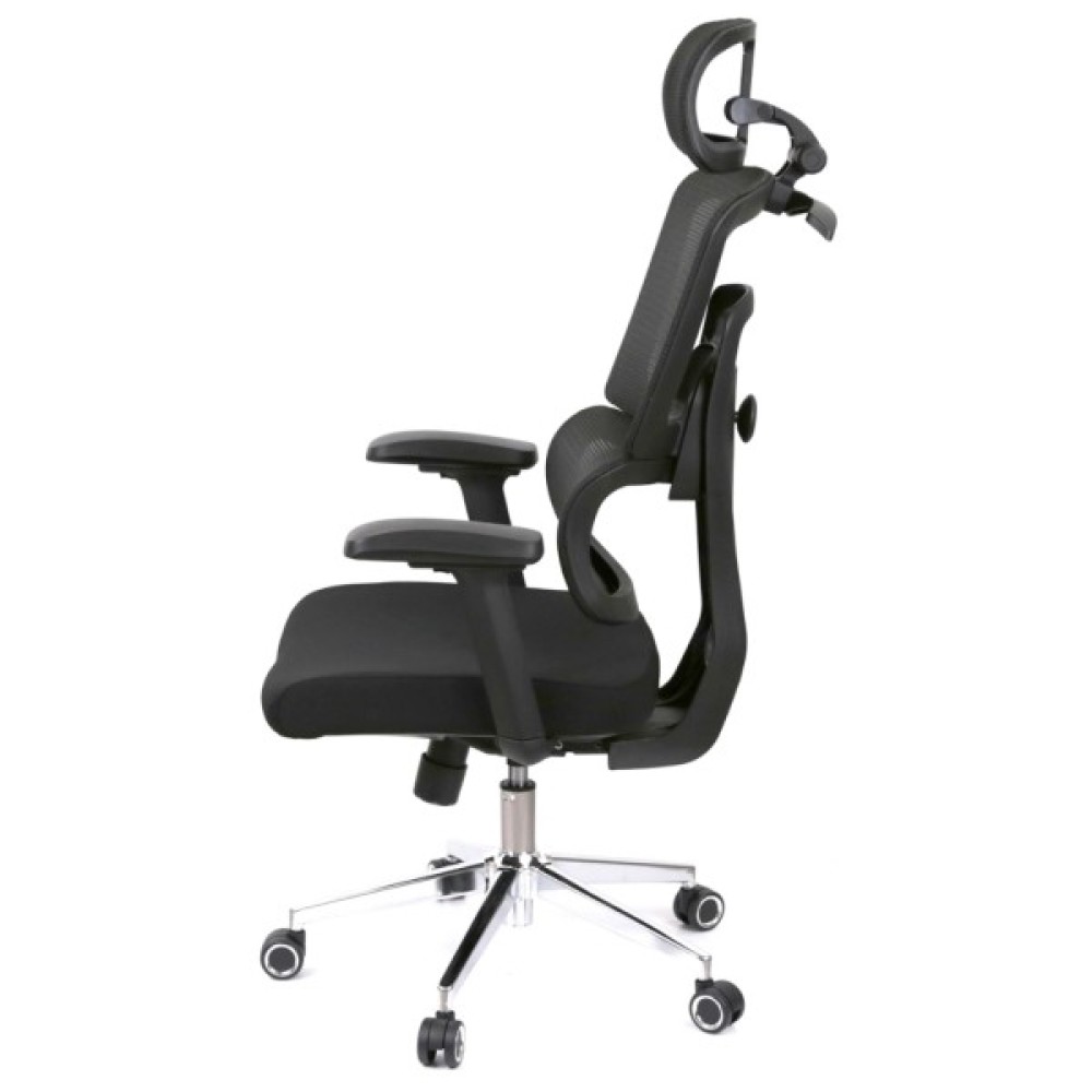 Ідеальна посадка. Точно налаштовувана висота спинки під ваш зріст, поперекова підтримка дозволяють адаптувати крісло під вашу антропометрію для максимального комфорту. Бічна підтримка, сформована каркасом, допоможе оббігати хребет і збереже правильну поставу. У сидінні крісла використовується міцна основа з гнутоклеєної фанери, яка спільно з поролоновим наповненням формують зручну посадку. Підголівник регулюється для індивідуального комфорту.
