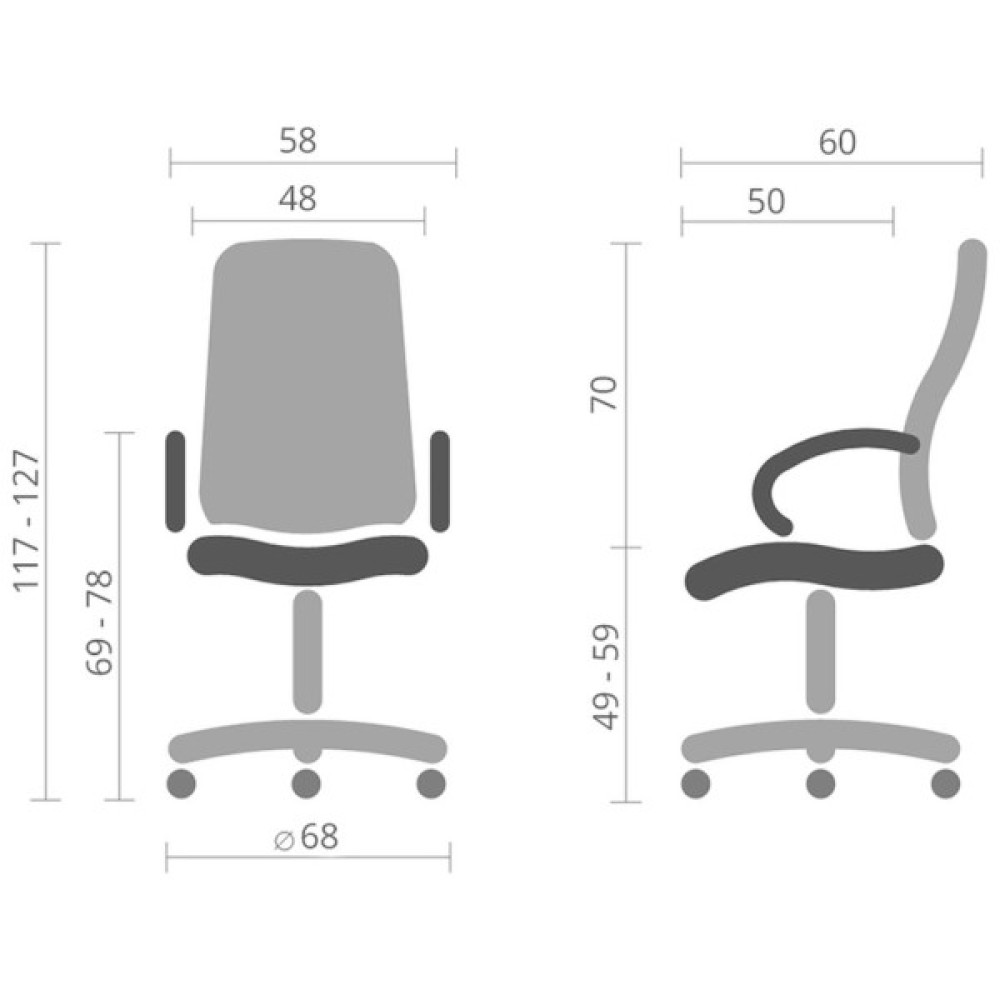 Підлокітники. Елегантний дугоподібний вигин металевих підлокітників, доповнений м'якими накладками, не тільки чудово доповнює зовнішню красу крісла, але й убереже ваші руки від контакту з холодним металом та подарує їм почуття максимального комфорту. Висота підлокітників підібрана таким чином, щоб у нижньому положенні сидіння крісло можна присунути впритул до столу.