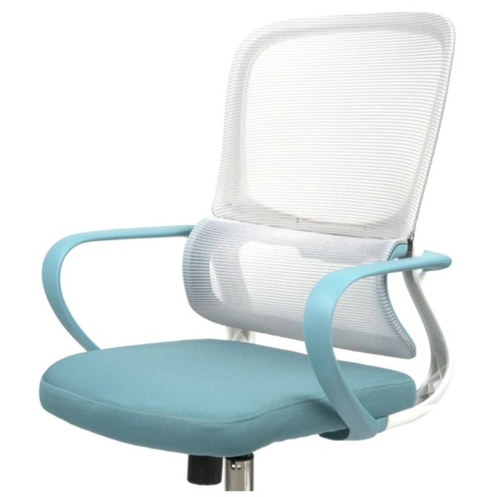 Підлокітники. Фіксовані підлокітники блакитного кольору мають плавні, вигнуті форми, які гармонійно поєднуються з загальним дизайном. Вони забезпечують зручну опору для рук.