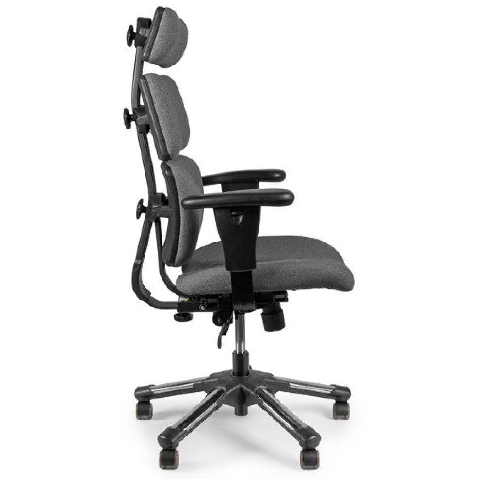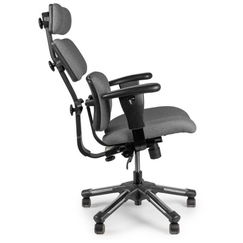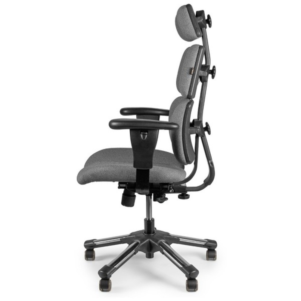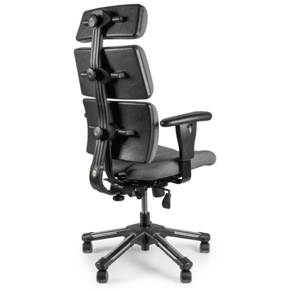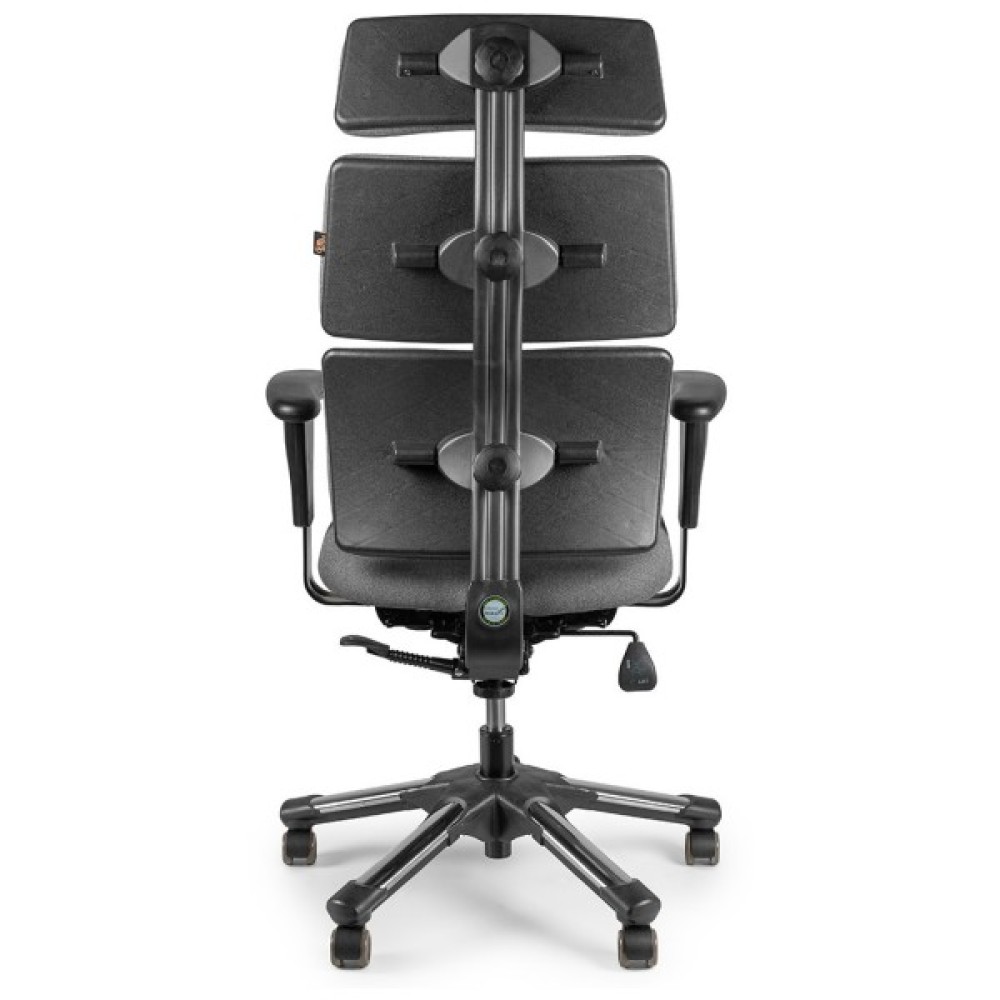 Симбіоз подвійного анатомічного сидіння та потрійної ортопедичної спинки дає можливість кріслу максимально точно реагувати на рухи того, хто сидить, реалізуючи безперервну підтримку всього корпусу, незалежно від зміни пози. Подвійне анатомічне сидіння використовується для профілактики захворювань малого таза, хвороб, до яких схильні офісні працівники. Рухоме сидіння не заважає кровопостачанню внутрішніх органів, не тисне на товстий кишківник та органи малого таза. Підлокітники 2D з напівм'якими поліуретановими чорними накладками встановлені на незалежні від сидіння основи, що дає змогу регулювати відстань між ними, з огляду на ширину плечей користувача.