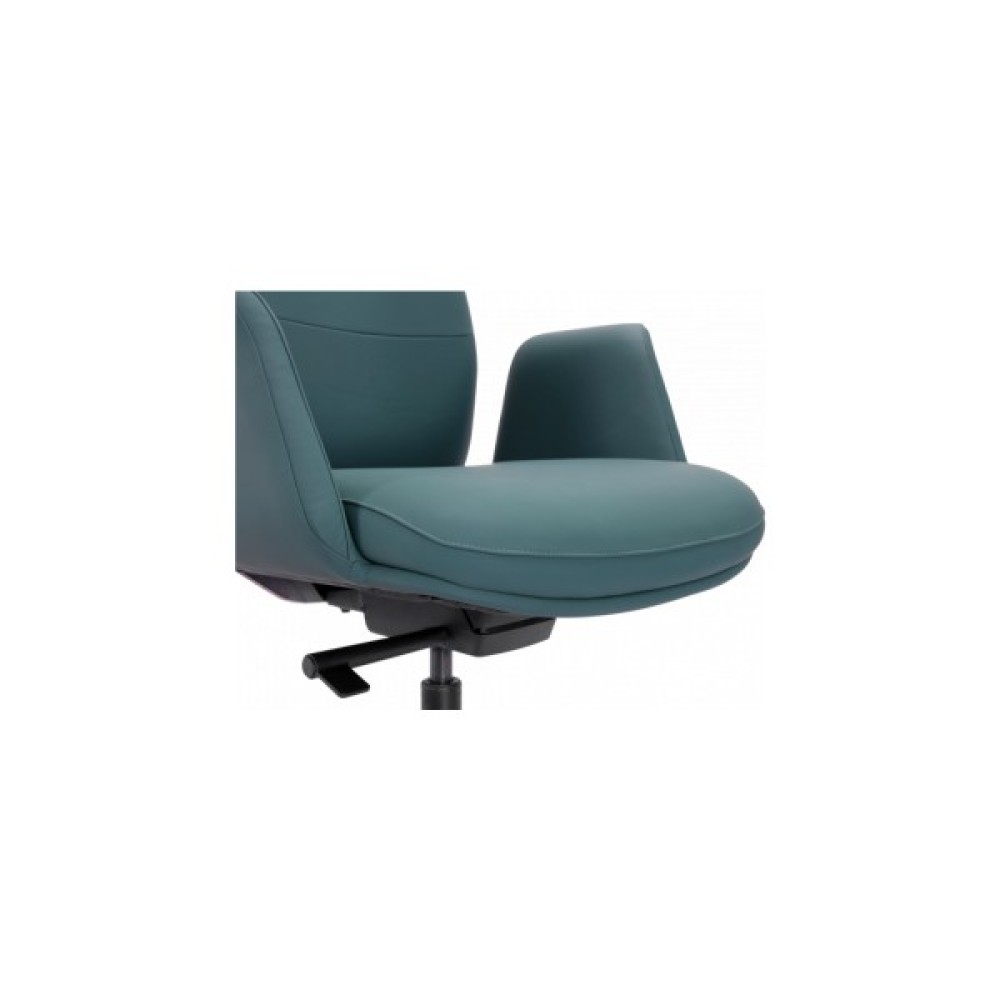 Модель створена для експлуатації в умовах щоденної роботи. Дерев’яна рама забезпечує надійність і стабільність, а металева хрестовина витримує навантаження до 120 кг. М’які елементи крісла довго зберігають пружність, не просідають і не деформуються під час інтенсивної експлуатації досить довгий час. Пластикові підлокітники з м’якими накладками стійкі до подряпин і механічного впливу, не втрачають форми і забезпечують тривалий комфорт. Якісна натуральна шкіра зберігає фактуру та колір, не втрачає довго естетичного вигляду навіть після багатьох років щоденного використання. Збалансована комбінація матеріалів та продумана конструкція гарантує довговічність, безпечну експлуатацію та стабільність крісла.