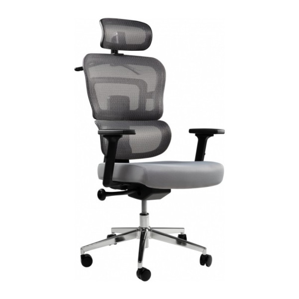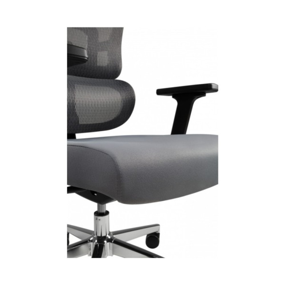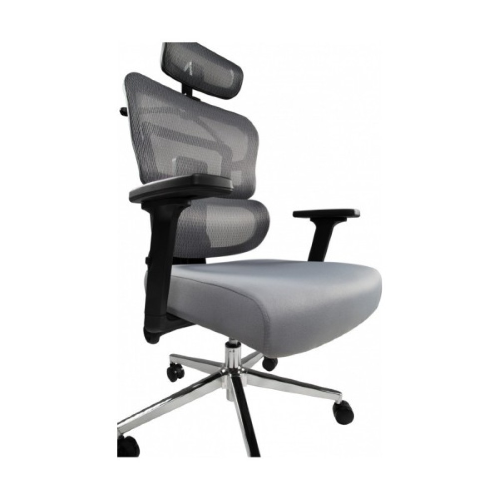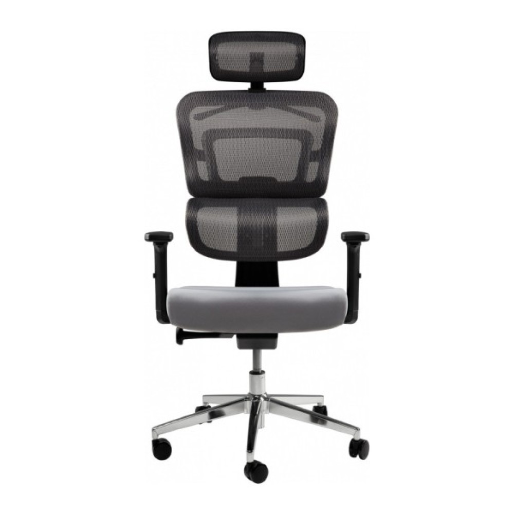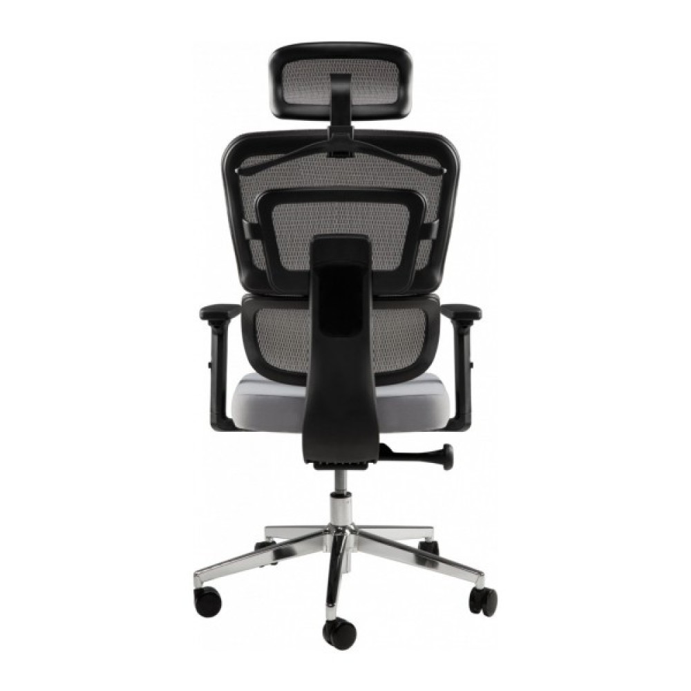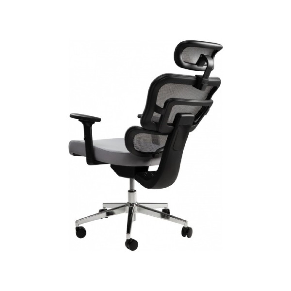 Ортопедична спинка, що складається з двох частин, забезпечує правильну підтримку спини. Вигин нижньої частини – підтримує поперек. Вся конструкція разом з підголівником допомагає уникнути проблем з поставою при тривалій сидячій роботі та забезпечує гарне самопочуття. М'який регульований підголівник дозволяє адаптувати його до індивідуальних потреб користувача. Ви можете зробити налаштування за висотою та горизонтальним положенням.