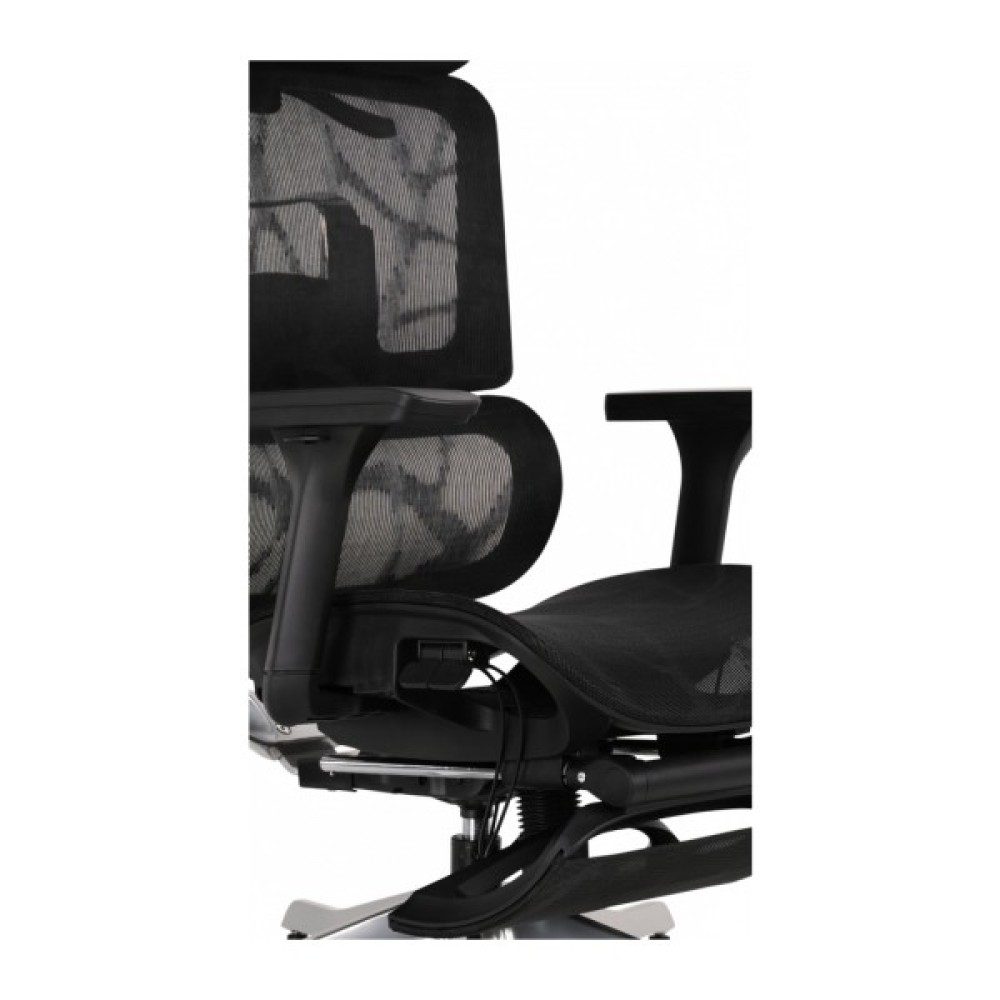 Механізм гойдання Synchro синхронізує нахил спинки і сидіння, забезпечуючи природний рух без навантаження на спину. Механізм газліфт євростандарту дозволяє плавно змінювати висоту сидіння. Зручною деталлю є наявність висувної підніжки — достатньо потягнути її вперед, і вона перетворює крісло на повноцінне місце для відпочинку.