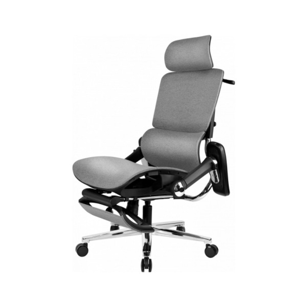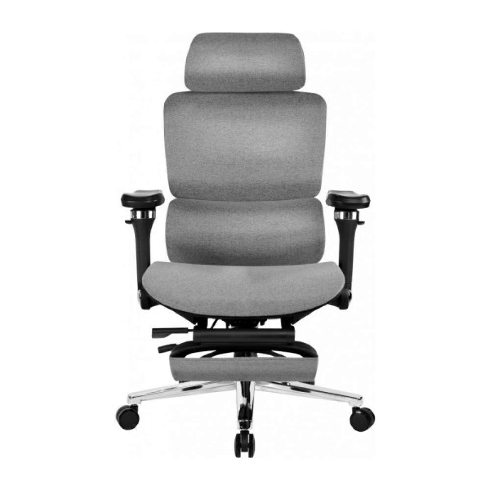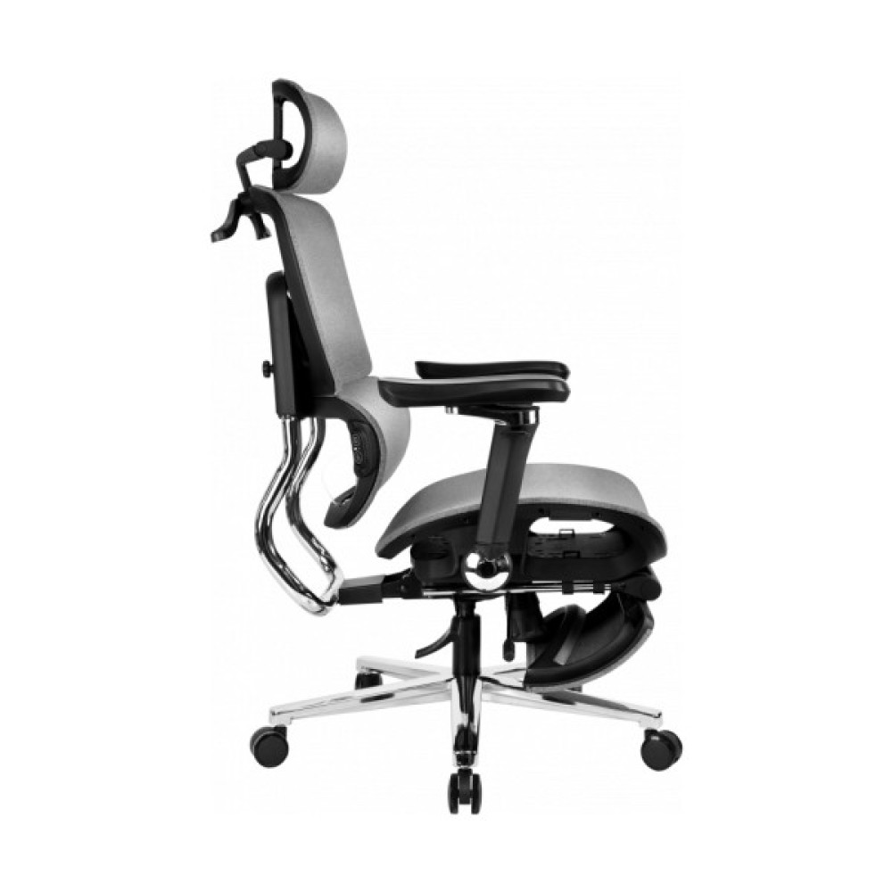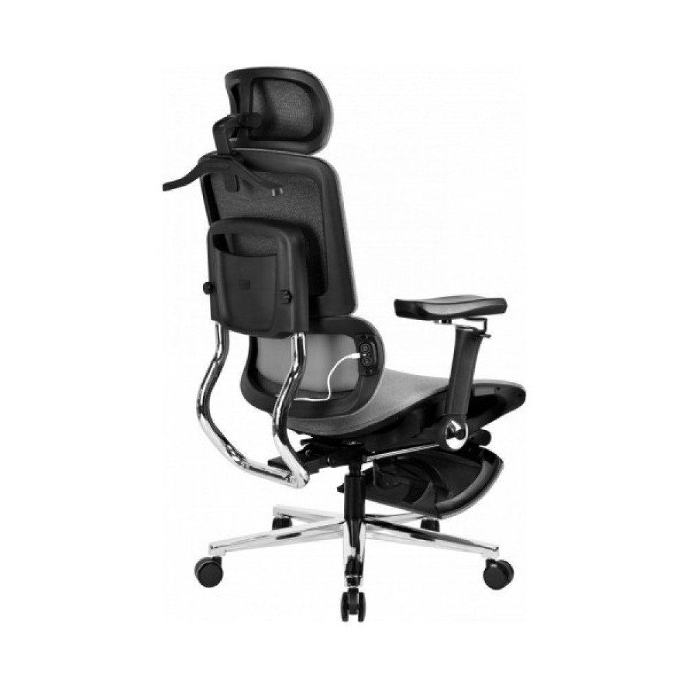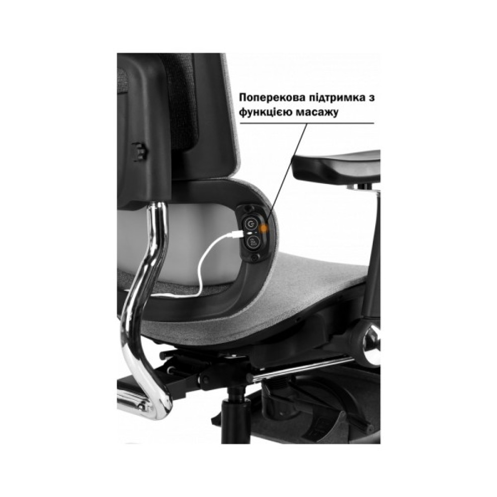 Сидіння та спинка розроблені з урахуванням анатомії людини, завдяки чому підтримується правильне та природне положення тіла. Комфортна м’яка посадка рівномірно підтримує стегна, а двосекційна спинка правильну поставу. Поперекова підтримка має функцію масажу. Регульовані підлокітники допомагають зручно розмістити руки, а підголівник легко налаштовується під зріст користувача, знижуючи навантаження на шию та плечі. Висувна підніжка дозволяє розслабити ноги під час відпочинку.