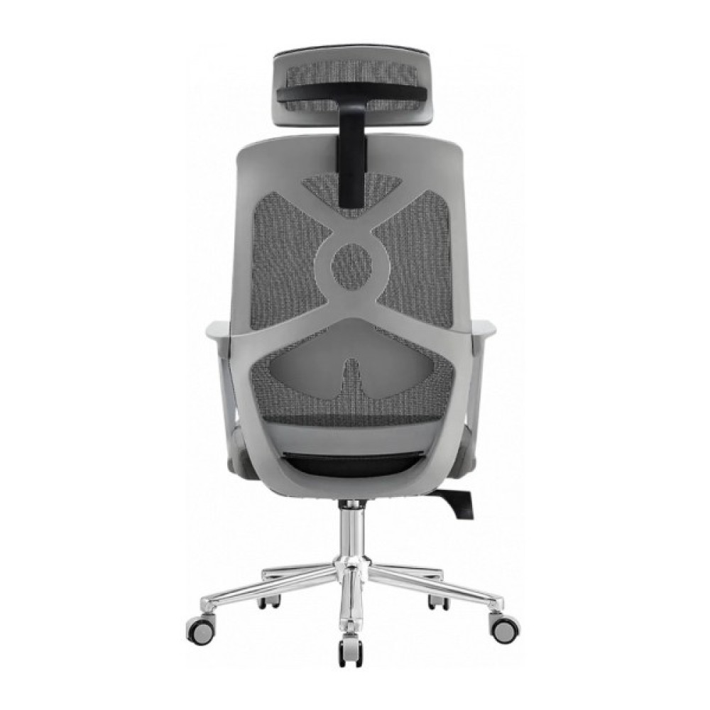 Крісло оснащене ергономічним підголівником, який легко регулюється по висоті, тому додатково покращує комфорт та запобігає напруженню в області шиї. Фіксовані в одному положенні підлокітники досить широкі, щоб зручно розташувати руки та запобігти втомі м'язів плечового відділу.