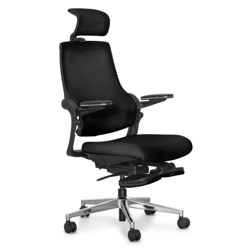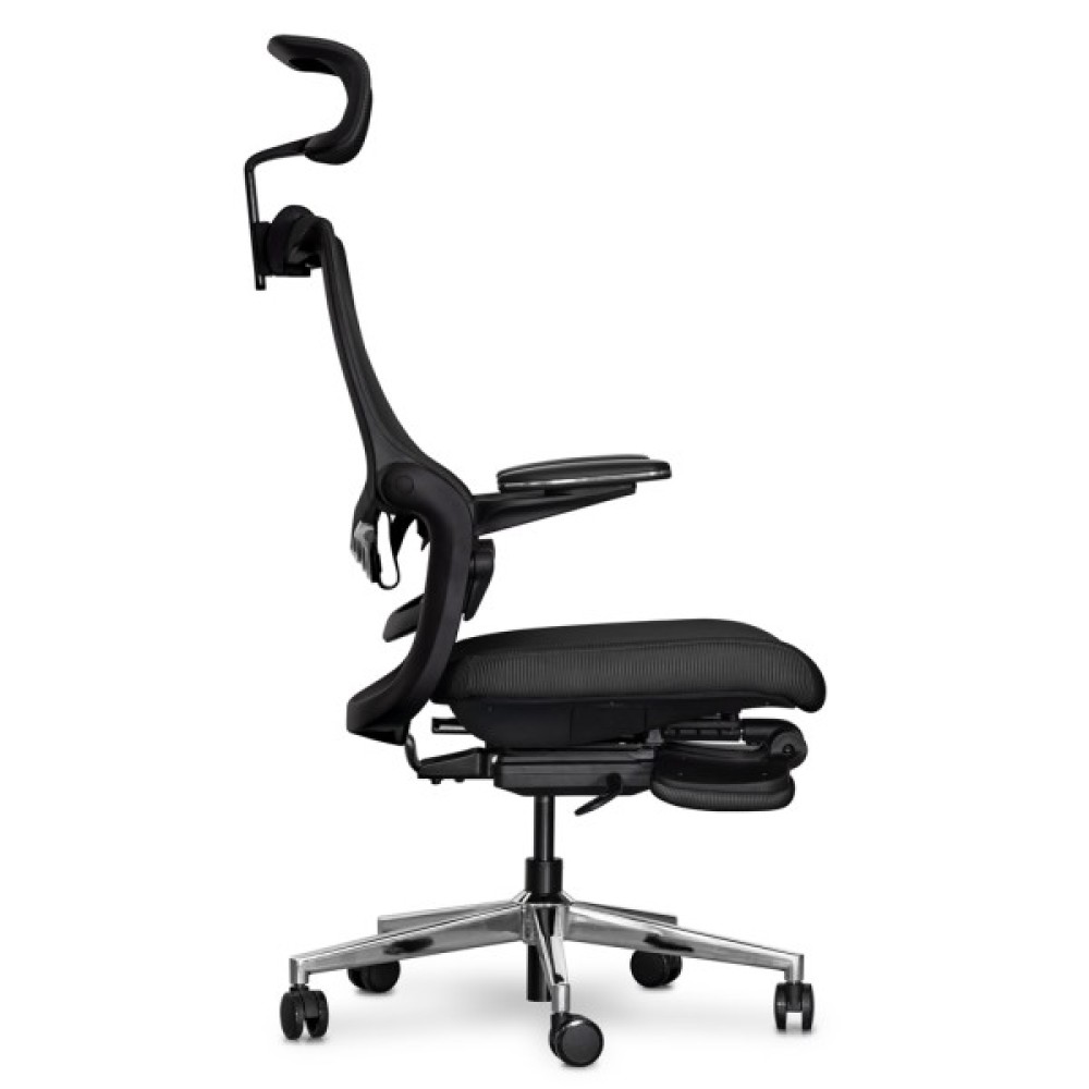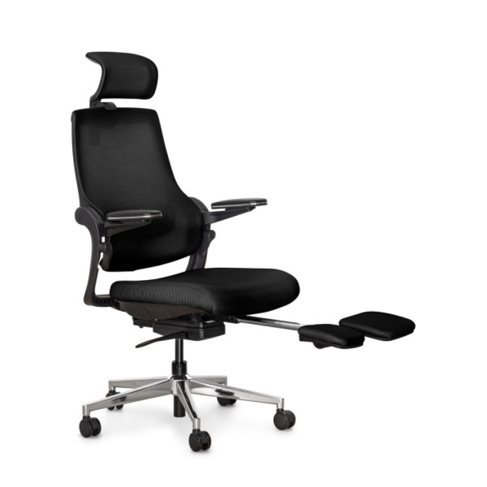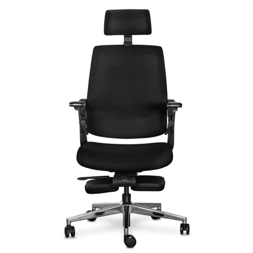 Максимальний нахил спинки при залученні одночасно обох осей регулювань. У цьому режимі користувач може насолоджуватися максимальним відпочинком. Спинка крісла прогинається, відкидається назад, і висувається підставка для ніг, створюючи ідеальні умови для відпочинку або повного релаксу під час перерв у роботі