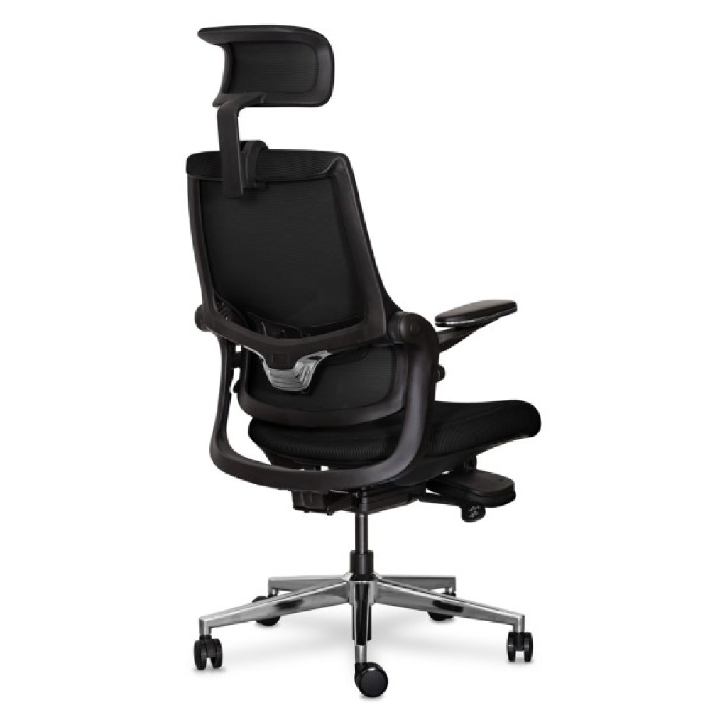 Спинка офісного крісла виготовлена з дихаючого матеріалу, який дозволяє повітрю циркулювати крізь неї, що сприяє ефективному вентиляційному процесу під час тривалого сидіння та зменшує відчуття спеки й пітливості. Дихаюча спинка підвищує загальний комфорт та підтримує оптимальні умови для роботи або відпочинку