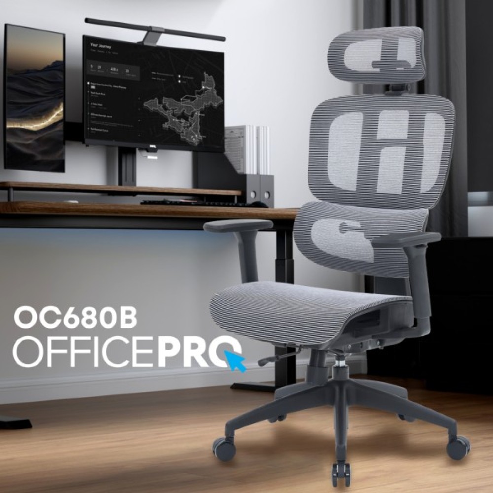 OfficePro OC680B – це ергономічне, високоякісне офісне крісло, з широкими можливостями персональних налаштувань. Завдяки суцільному сітчастому покриттю та міцному пластиковому каркасу забезпечується вільна циркуляція повітря, що надає свіжості та легкості під час експлуатації. Регульована поперекова підтримка забезпечує ергономічну підтримку нижньої частини спини, щоб запобігти перенапрузі при тривалому сидінні. Кут нахилу та висота підголівника регулюється для оптимального позиціонування. А завдяки регулюванню спинки за висотою ви можете налаштувати зручне положення спинки для свого зросту. Нейлонові 3D підлокітники, покриті м'яким поліуретаном, регулюються за висотою, вперед-назад і змінюють кут повороту по горизонталі (назовні або всередину). Для регулювання нахилу та фіксації спинки, у кріслі використовується синхромеханіз, що у поєднанні з функцією регулювання глибини сидіння надає ще більше комфорту. Регулювання: Висота підголівника Висота підлокітників Висота сидіння Висота спинки Глибина сидіння Жорсткість гойдання Кут нахилу підголівника Кут нахилу сидіння Кут нахилу спинки Кут повороту підлокітників
