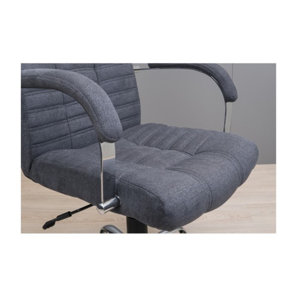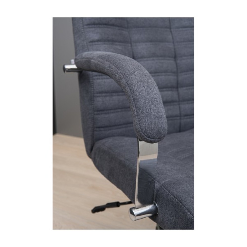 Крісло має хромовані підлокітники з м’якими накладками, що дозволяє комфортно спиратися на них у будь-якому положенні та розміщувати руки під час відпочинку. Стильна хромована хрестовина оснащена прогумованими роликами, що дозволяє безшумно та безпечно пересувати крісло по різних поверхнях, не боячись їх пошкодити.