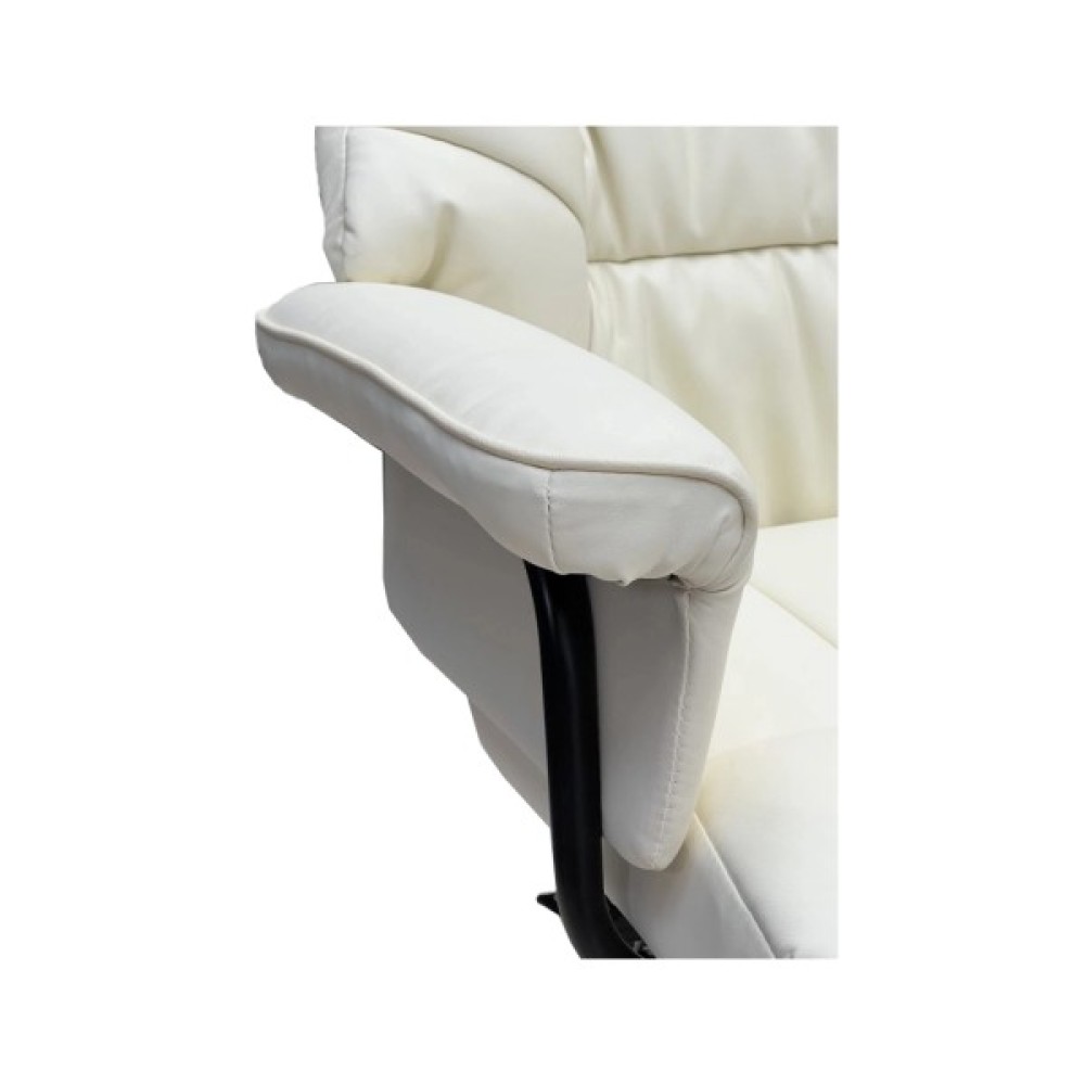 Це крісло покрите високоякісною екошкірою приємного бежевого кольору. Великі, м’які підлокітники забезпечують комфортне спирання у будь-якому положенні і зручне розміщення рук під час відпочинку.