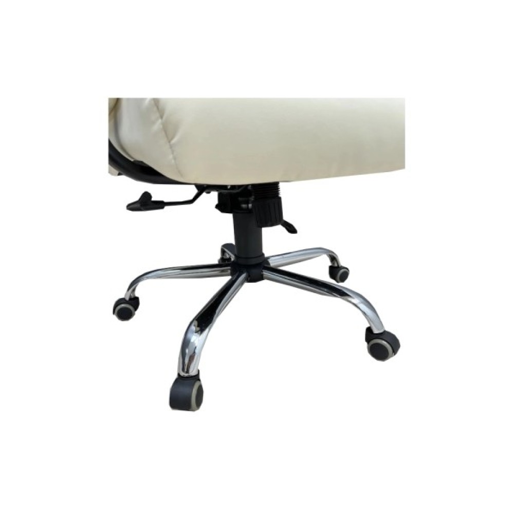 Міцна хромована металева хрестовина товщиною 1,4 мм оснащена роликами з гумовим покриттям. Це забезпечує тихе і безпечне пересування крісла по різним поверхням, без страху їх пошкодити.