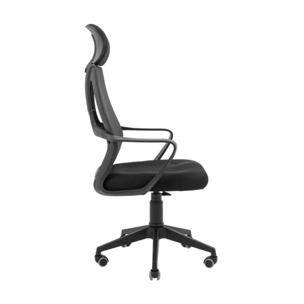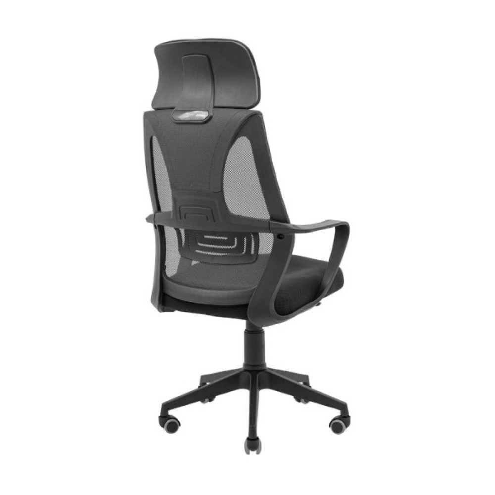 Спинка крісла обтягнута кольоровою нейлоновою сіткою — еластичним та зносостійким матеріалом, у яку інтегрована поперекова підтримка. Також комфорту спинці додає зручний, м’який підголівник, який регулюється за висотою та обтягнутий сітчастою повітропроникною тканиною.
