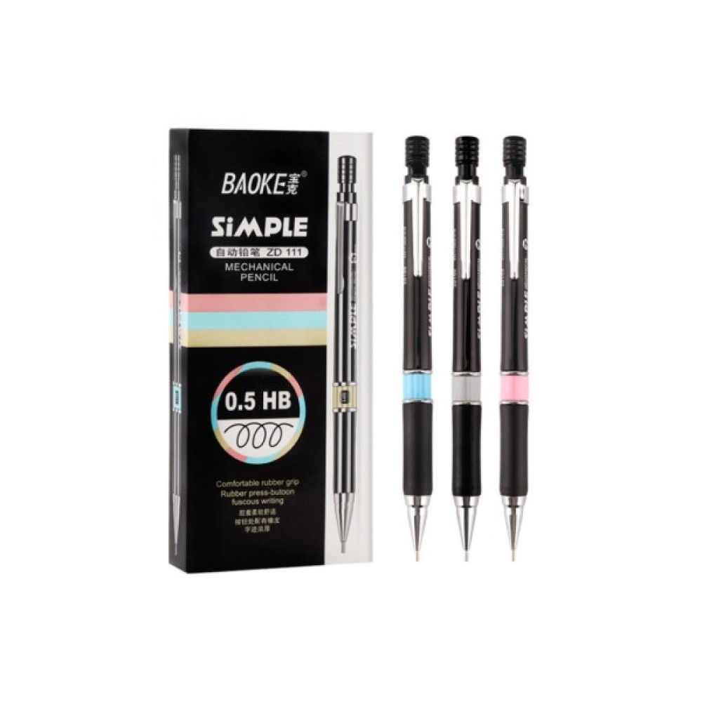 Механічний олівець з гумовим грипом та гумкою TM Baoke відмінно підходить для письма, малювання, креслення в офісі, дома та школі.
