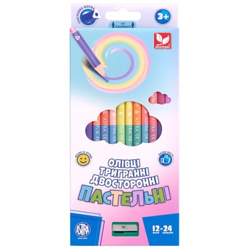 Пастельні двосторонні з точилкою 12 шт 24 кольори