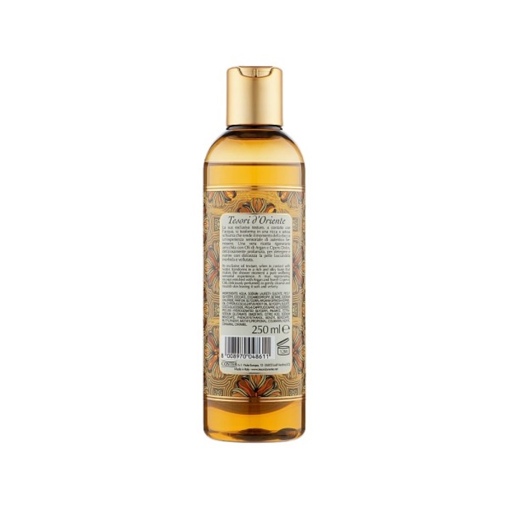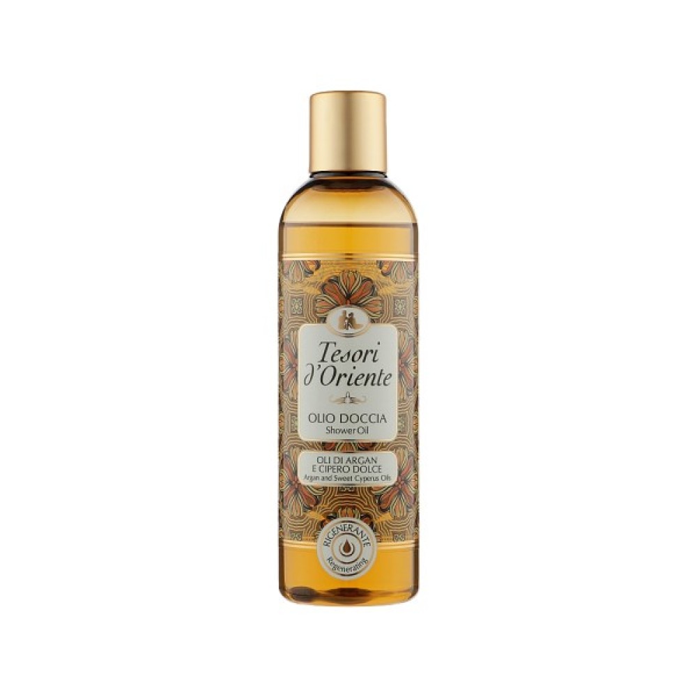 Арганієва олія стала ключовим компонентом олії для душу Argan And Sweet Cyperus Oils бренда Tesori d'Oriente. Цей інгредієнт має живильні властивості і здатний проникати глибоко в шари епідермісу, щоб активувати процес регенерації клітин і нормалізувати роботу сальних залоз, а також кровообіг і лімфоток. Олія арганії містить безліч жирних кислот омега-6, які допомагають зберегти молодість шкіри і подарувати їй тонус. Комплекс вітамінів сприяє формуванню молекул колагену й еластину. Цей продукт підійде для всіх типів шкіри і подарує вам комфорт.