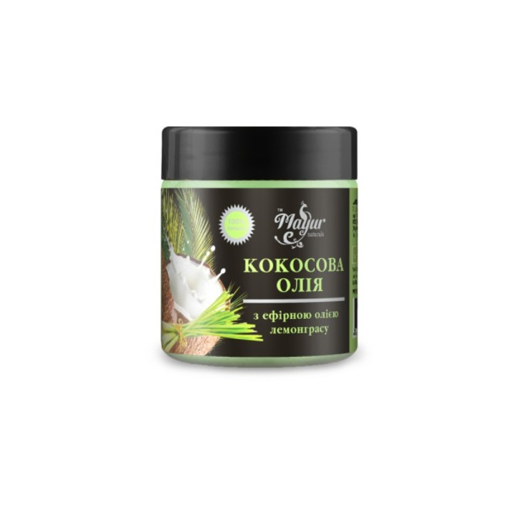 Кокосова олія Mayur залишить на вашій шкірі легкий аромат свіжого лемонграсу, зробить її ніжною й здоровою. Ефірна олія лемонграсу додасть сил і допоможе сконцентруватися. Засіб контролює жирність шкіри, тонізує її й зменшує зморшки, має антисептичну дію. Повністю натуральний склад продукту наситить шкіру природними вітамінами й антиоксидантами.