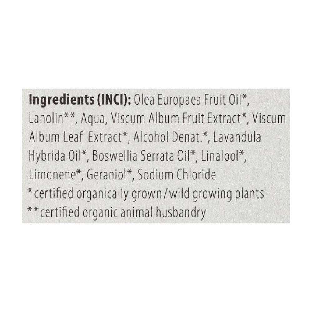 Склад Oleo europaea fruit oil, Viscum album leaf extract, Viscum album kernel extract, Lanoline, Alcohol denat., Parfum, Lavandula hybrida oil, Boswellia serrata oil