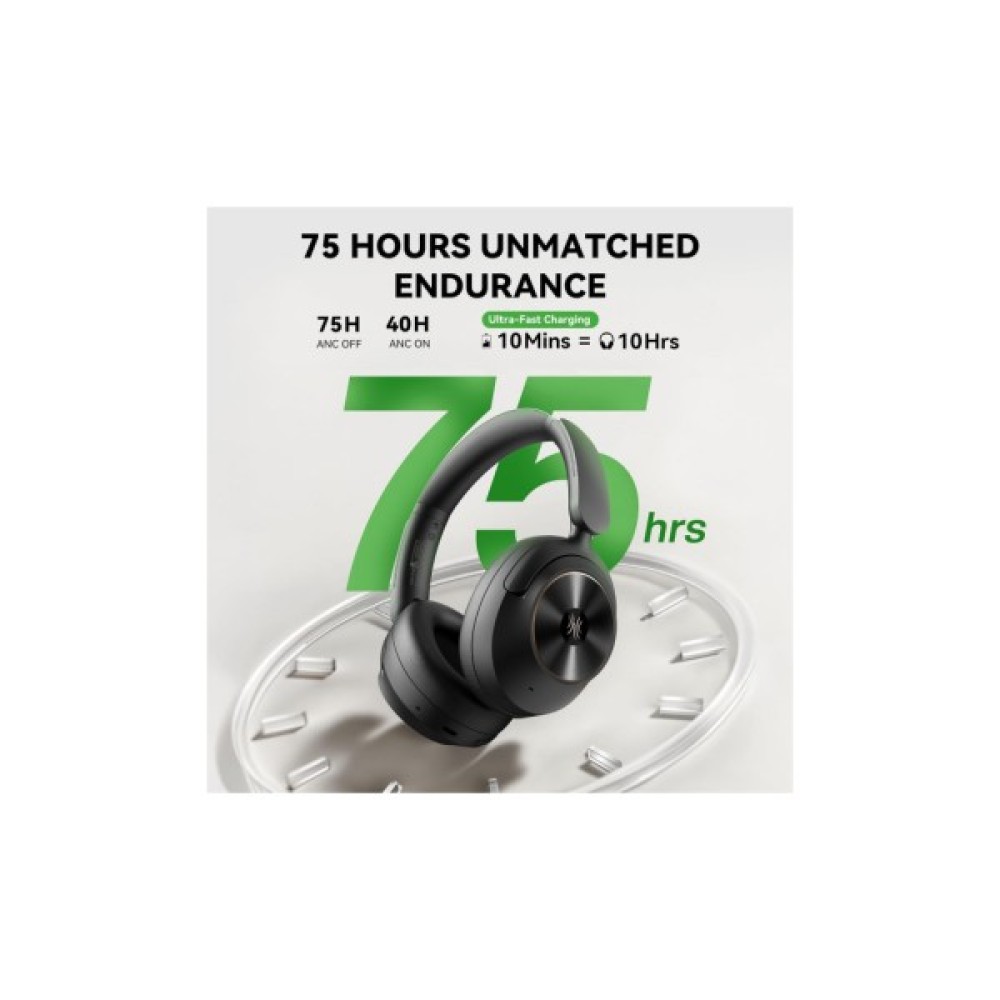 Вбудований акумулятор витримує до 40 годин відтворення в режимі ANC та до 75 годин без нього. OneOdio A6 підтримує функцію швидкого заряджання - 10 хвилин поповнення заряду гарантує до 10 годин відтворення.