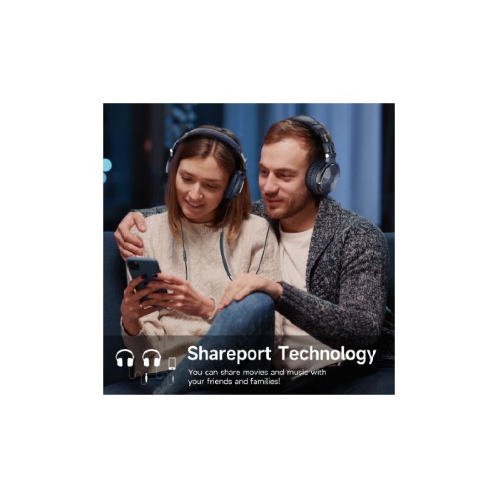 Фірмова технологія OneOdio Shareport відкриває можливість послідовного підключення двох пар навушників. Це означає, що ви можете ділитися музикою з друзями, створюючи нові спільні враження і творчі ідеї.