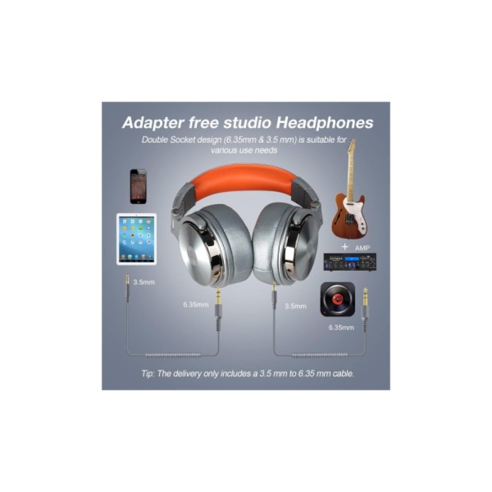 OneOdio Pro 50 підтримують подвійний інтерфейс підключення: Jack 3.5 мм та 6.35 мм, що робить їх сумісними з більшістю аналогових джерел звуку. Завдяки цьому ви можете під'єднувати навушники до різноманітних пристроїв одночасно, забезпечуючи безперебійний перехід між ними. Позолочені штекери кабелю 3.5 мм→6.35 мм мінімізують втрати якості звуку, надаючи бездоганну передачу аудіосигналу.