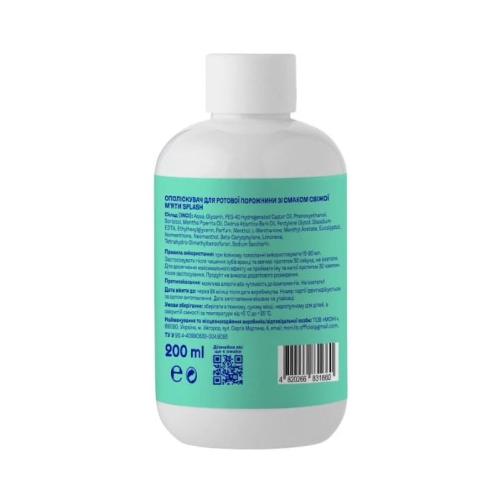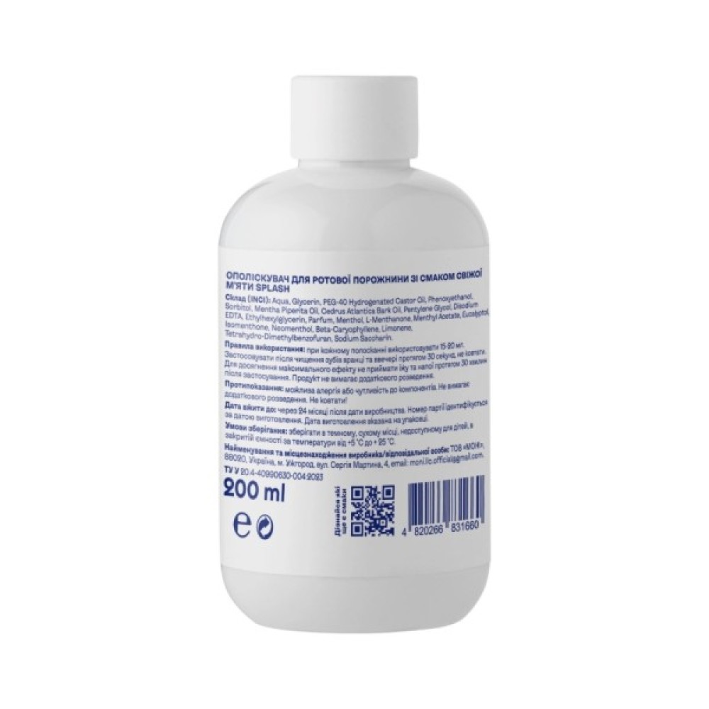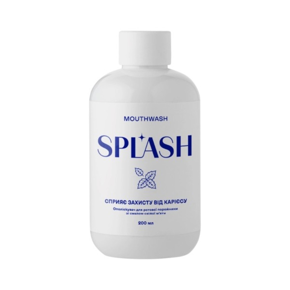 Ополіскувач для ротової порожнини зі смаком свіжої м'яти Splash — це твій надійний помічник у підтримці свіжості дихання та здоров'я ясен.