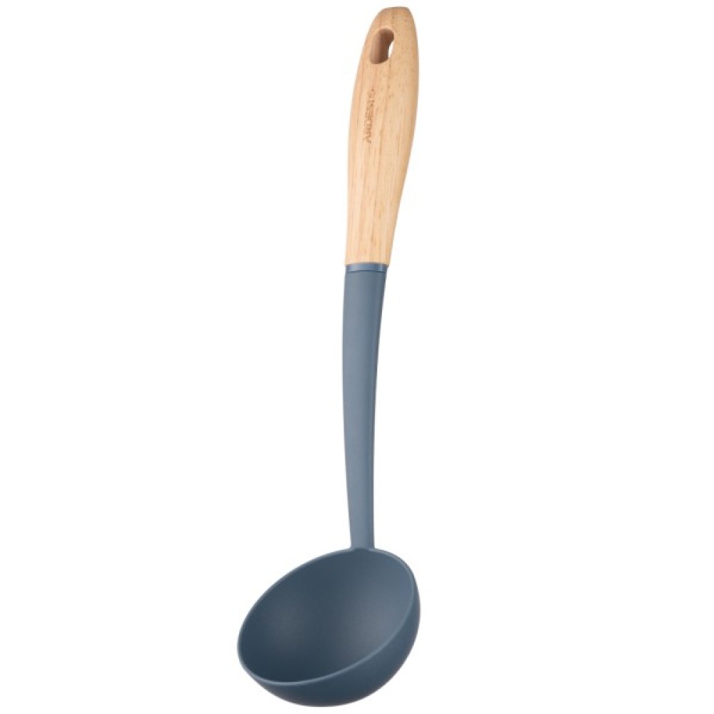 Ополоник ARDESTO Midori виготовлено з термостійкого нейлону. Ергономічне руків’я з дерева не ковзає та забезпечує оптимальний хват під час роботи. Розмір виробу становить 31.5 × 8.2 × 7 см. Мити ополоник у посудомийній машині не можна.