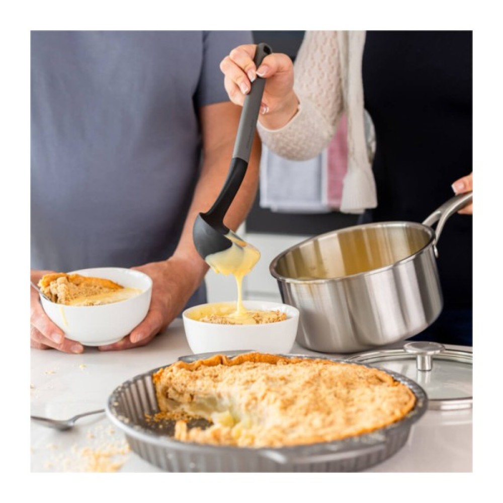 Виготовлений із високоякісної нержавіючої сталі, ополоник стійкий до корозії та деформації, що гарантує довговічність навіть при щоденному використанні. Матеріал також легко очищується та підходить для миття в посудомийній машині, що значно спрощує догляд за кухонним приладом.