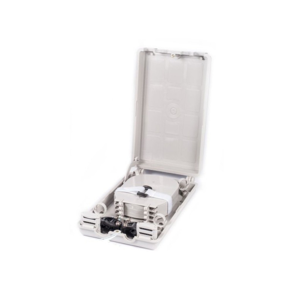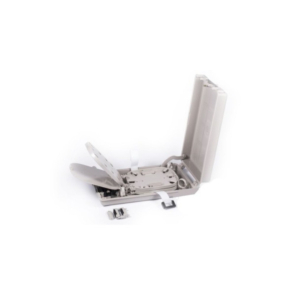 Опис бокса RCI FOB-D Тип конструкції/кріплення: внутрішній / до стіни. Малогабаритний оптичний бокс для встановлення всередині приміщень. Рівень захисту IP20. Кріплення: до стіни за допомогою дюбелів (у комплекті). Кабельні вводи/виводи: 2/24 Основні кабельні вводи для кабелю із зовнішнім діаметром Ø20мм. - 2шт.; Отвори для виведення патч-кордів Ø3мм. - 24шт. (По 12 з двох сторін). Максимальна кількість зварювань: 12 Сплайс-касета номінально на 6 (максимально на 12) зварювань - ST0906. Внутрішня консоль: сплайс-касети, організатори, фіксатори. Кабельні організатори й тримачі до кожного ввідного кабелю. Максимальна кількість сплайс-касет - 3шт. Матеріал/колір: ABS, ROHS / сірий ABS (Акрилонітрілбутадієнстірол); відповідність RoHS (Restriction of Hazardous Substances). Замок: різьбове з'єднання. Кришка з фіксацією різьбовим з'єднанням. Комплектація: гільзи, кріплення, маркування. Сплайс-касета ST0906 - 1шт. (3 *), термонасадкові гільзи - 12шт. (36 *), стяжки, маркувальні наклейки, дюбеля, ізолююча стрічка. * Повна комплектація.