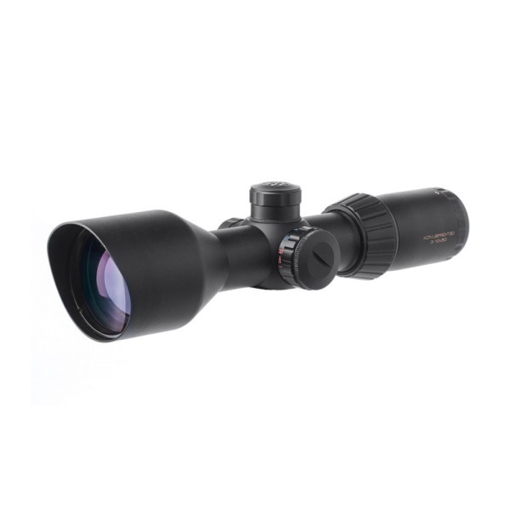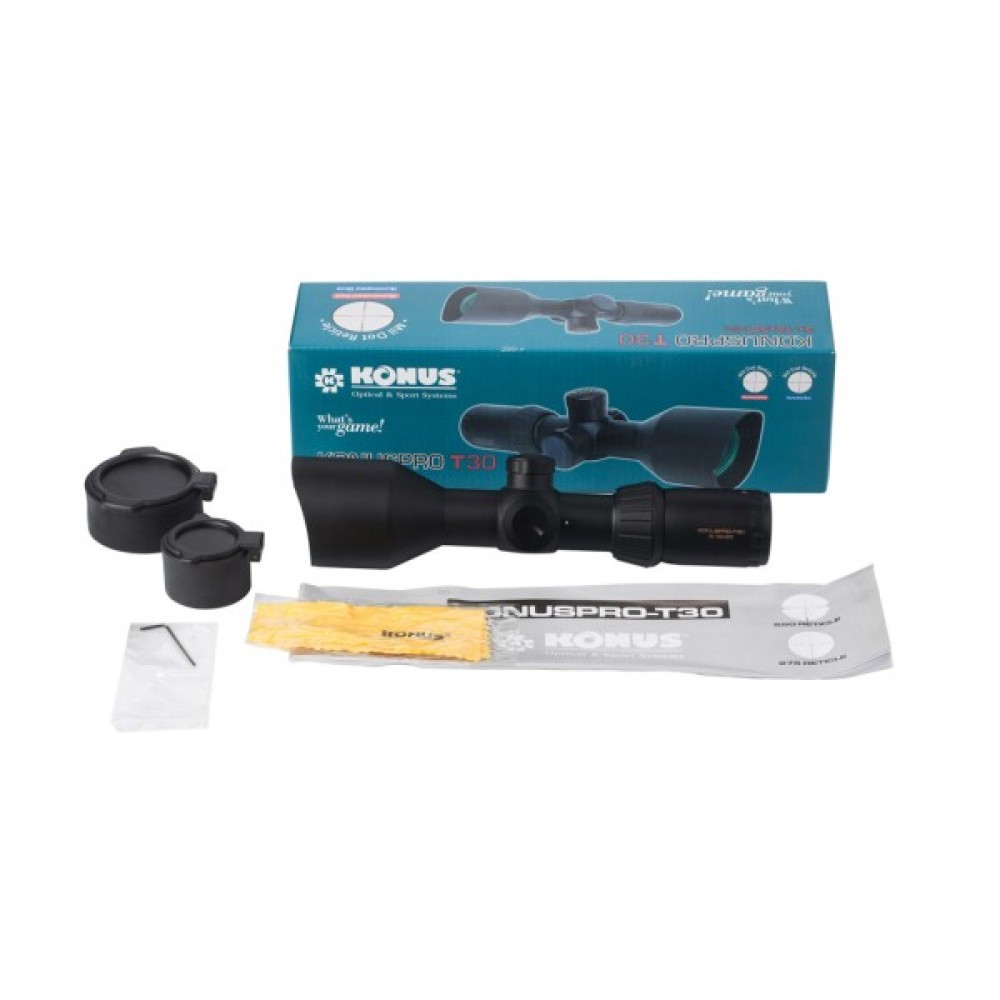KONUSPRO T-30 3-12x50 – найбільш світлосильна модель серії прицілів KONUSPRO T-30. Об'єктив діаметром 50 мм збирає достатньо світла для роботи після заходу сонця або до сходу сонця. Діапазон допустимих збільшення (3-12 крат) дозволяє вести стрілянину на середні та середньо-далекі відстані.