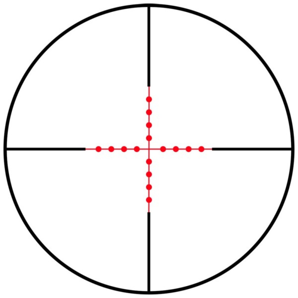 - Підсвічування прицільної сітки: повне двокольорове (red/blue), 5 рівнів інтенсивності