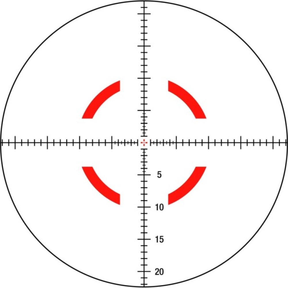 Прицільна сітка у першій фокальній площині дозволяє зберігати точні значення при будь-якому збільшенні, дозволяючи стрілку швидко та точно застосовувати правильне прицілювання.