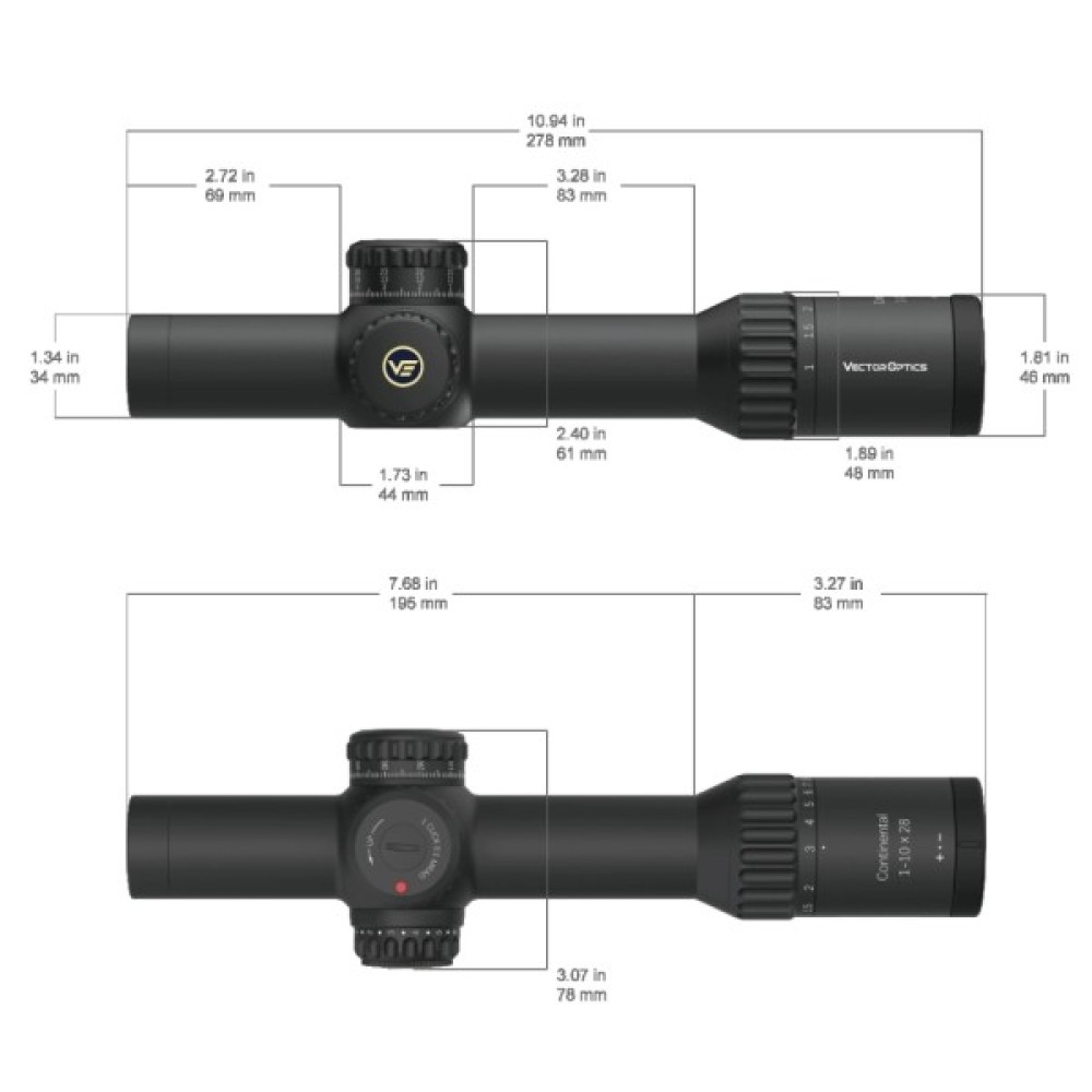 - Конструкція та міцність: Приціл виготовлений з високоякісного авіаційного алюмінію, що робить його стійким до ударів, водонепроникних та запотівань. Континентальний розрахований на використання в складних умовах. Vector Optics Continental перевірено витримує віддачу калібрів у .338 LM включно.
