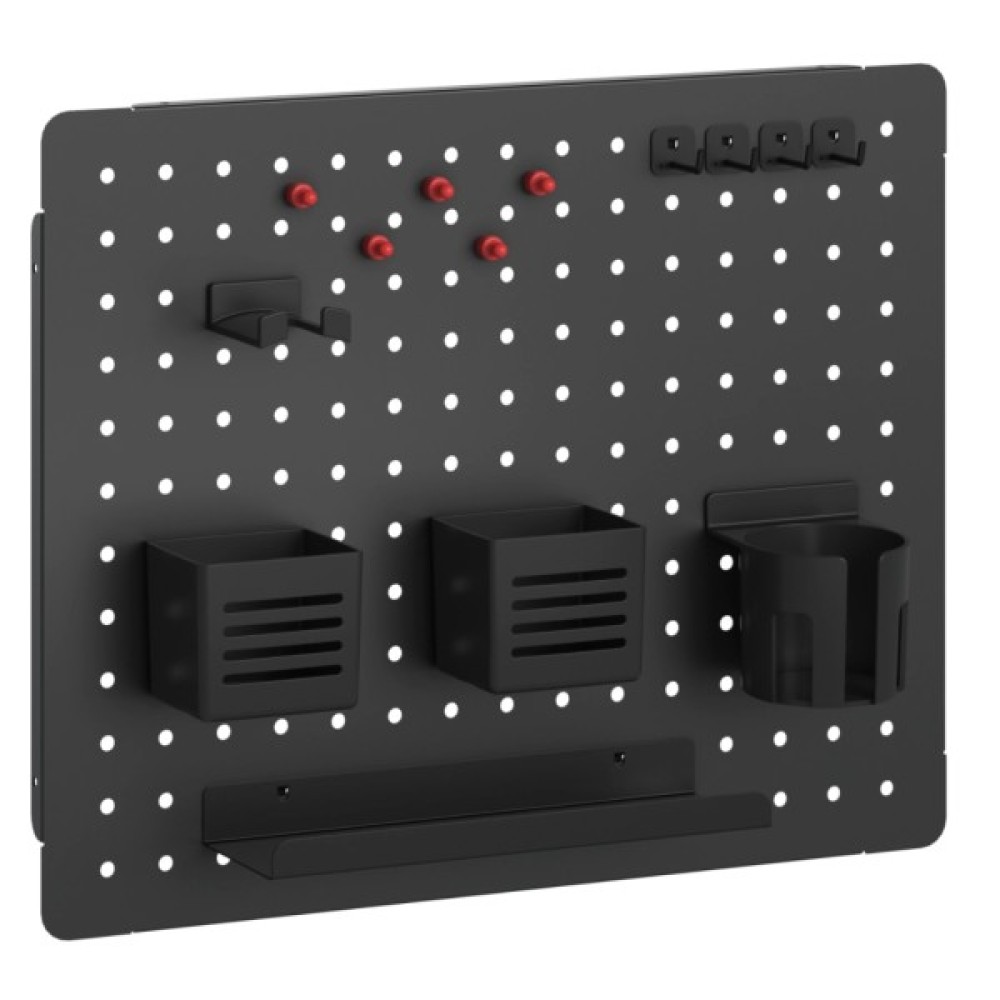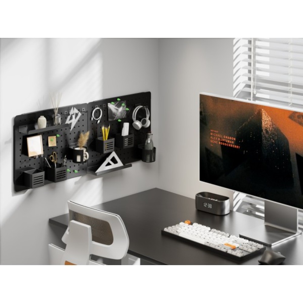 Настінна дошка-органайзер OfficePro – це функціональне, універсальне та стильне рішення для зберігання з набором різних тримачів для організації офісного або геймерського робочого простору. Від канцелярського приладдя та декору до цифрової периферії та книжок – цей органайзер у сучасному стилі ідеально підходить для зберігання та демонстрації речей.