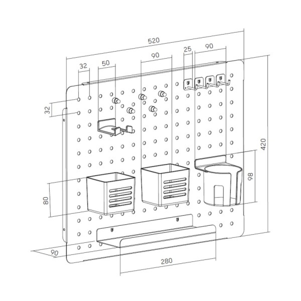 Широкі можливості довільного розміщення комплектних тримачів дозволяють персоналізувати простір відповідно до власних уподобань. Міцна сталева конструкція та порошкове покриття поверхні гарантують надійність і довговічність.