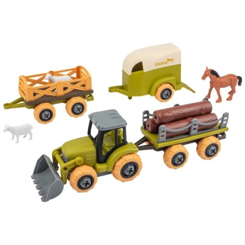 У наборі є все для справжньої сільськогосподарської пригоди: комбайн з причепом, яким можна управляти, збираючи врожай, і фігурки фермера з його вірними тваринками, що завжди готові допомогти. А ще тут є викрутка, з якою ваш малюк зможе самостійно збирати та розбирати техніку, як справжній механік.