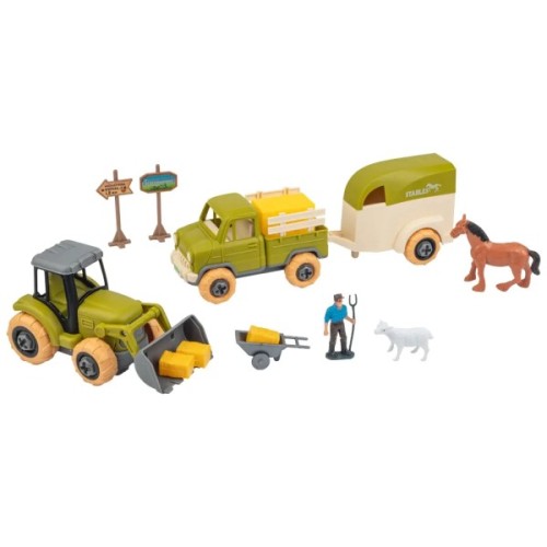 Набори вирізняються чудовою деталізацією і тематичним забарвленням, мають реалістичні фігурки тварин та аксесуари фермерів. Кріплення на шурупах дає змогу збирати і розбирати сільськогосподарську техніку багато разів за допомогою викрутки (входить до комплекту). А рухомі елементи техніки роблять гру ще цікавішою.