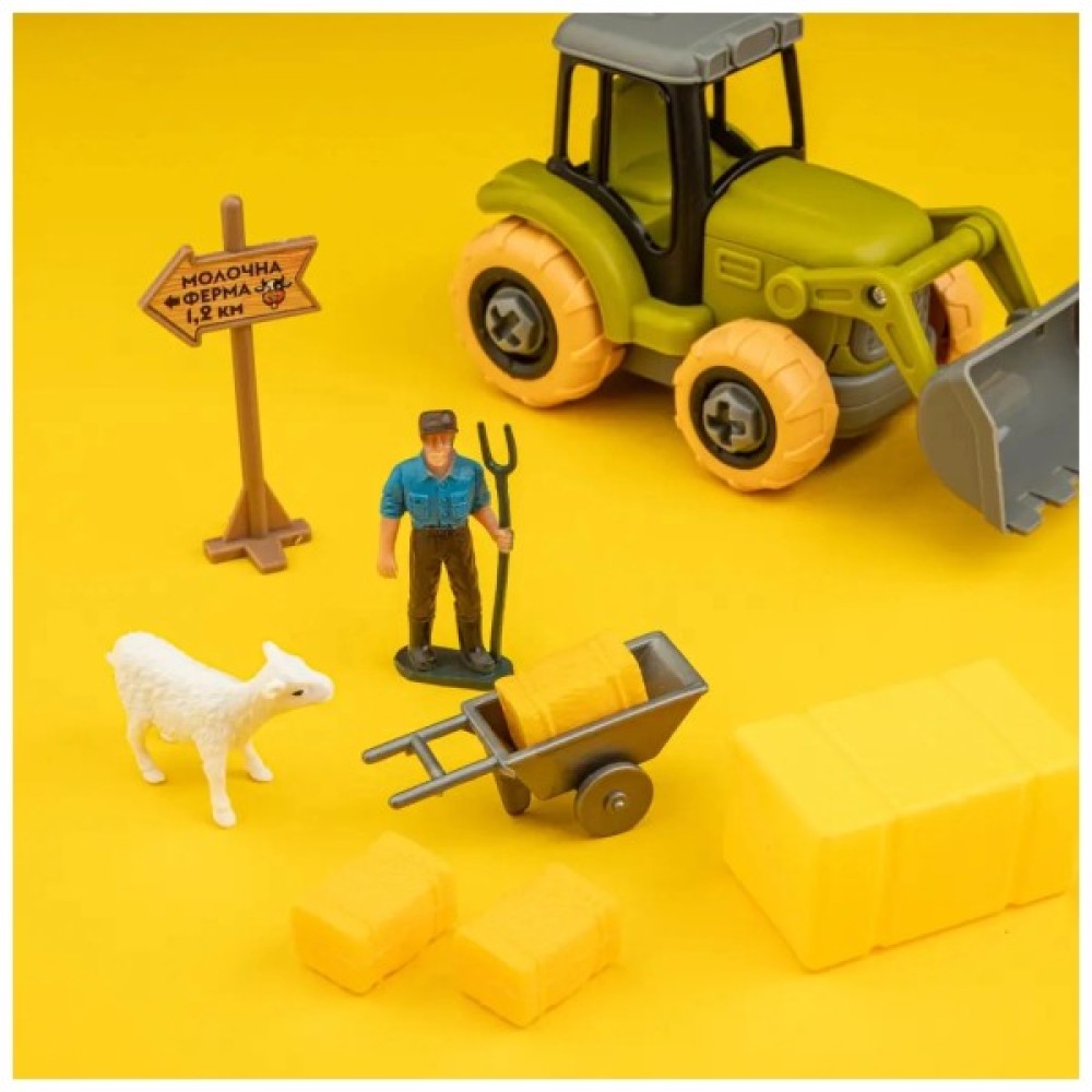 вантажівка, трактор, викрутка, фігурки фермера, тваринок та додаткові аксесуари
