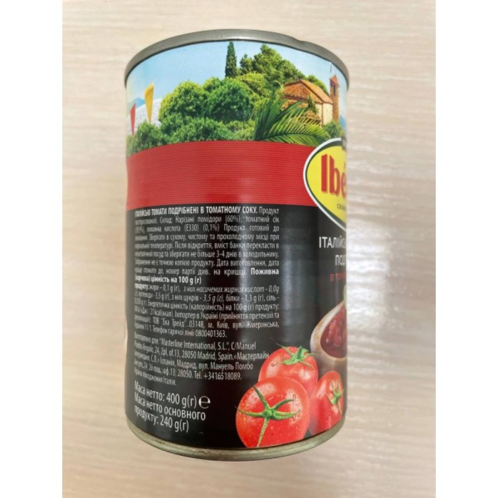Нарізані очищені томати у томатному соку Iberica — це ідеальний інгредієнт для створення смачних та корисних страв швидко та легко.