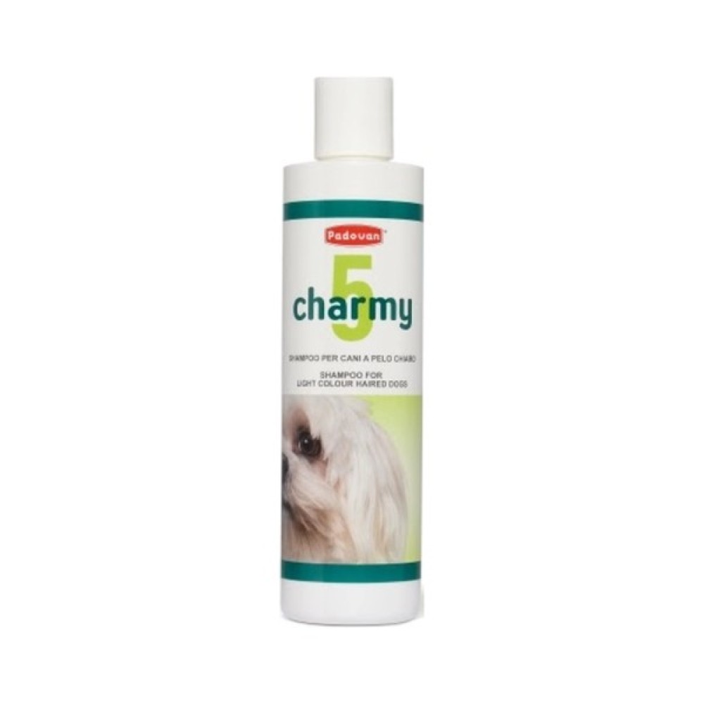 Padovan Charmy 5 – це шампунь, розроблений для глибокого очищення шерсті, надає сяйва світлому та білому забарвленню, не подразнюючи епідерміс.