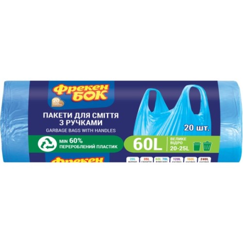 Пакети для сміття з ручками 60 л ідеально підходять для стандартного або нестандартного сміттєвого відра 15-18 літрів.