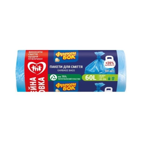 Пакети, сміття, Фрекен, БОК, Міцні, Сині, 60, л, 40, шт, 4823071606638