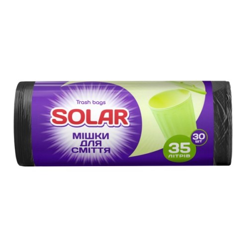 Пакети для сміття ТМ Solar - міцні пакети Українського виробника, дадуть вам змогу з легкістю позбутися зайвого сміття в будинку, захистять відро для сміття від зайвих забруднень.