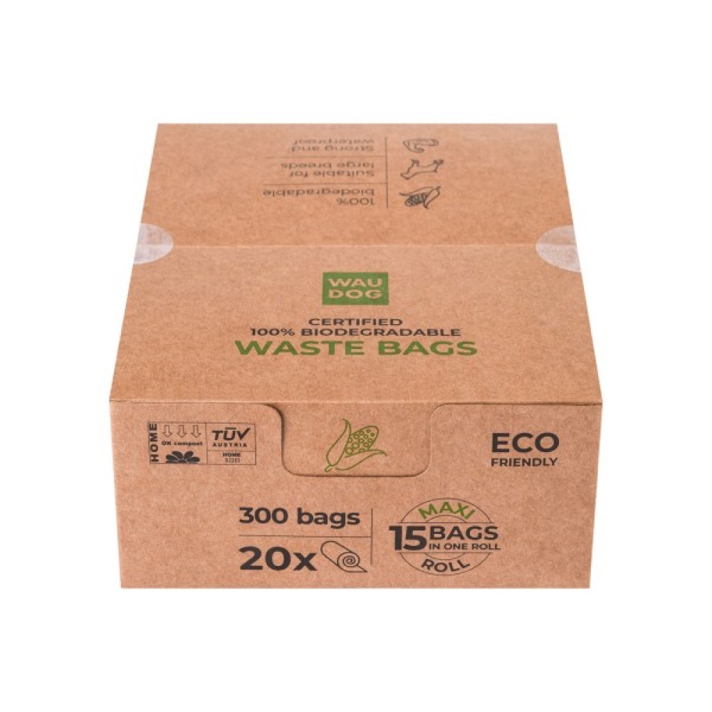 Переваги: • Міцні та водонепроникні — витримують 2,5 кг або 2 л • Вигідне фасування: в упаковці 20 міні рулонів по 15 пакетів у кожному • Розмір пакета підходить для великих порід: 22х33 см • 100% біорозкладні