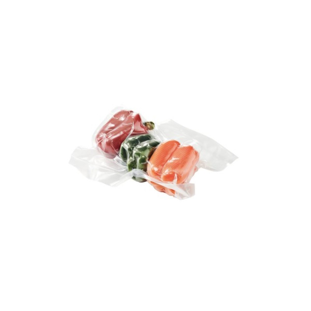 Пакети для вакуумування складаються з двошарової плівки. Зовнішній шар - поліамід - забезпечує герметичність і непроникність. Внутрішній шар - поліетилен має рифлену поверхню, що забезпечує більш якісне вакуумирование, сприяє максимальному видаленню повітряного середовища, тим самим продовжуючи термін придатності продуктів.