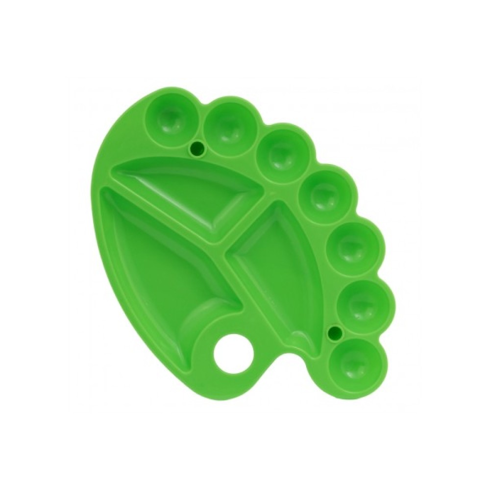 Палітра для художніх робіт. Оснащена 7 лунками для фарби по колу та 3 в центрі - для змішування кольорів. Виготовлено з пластику.