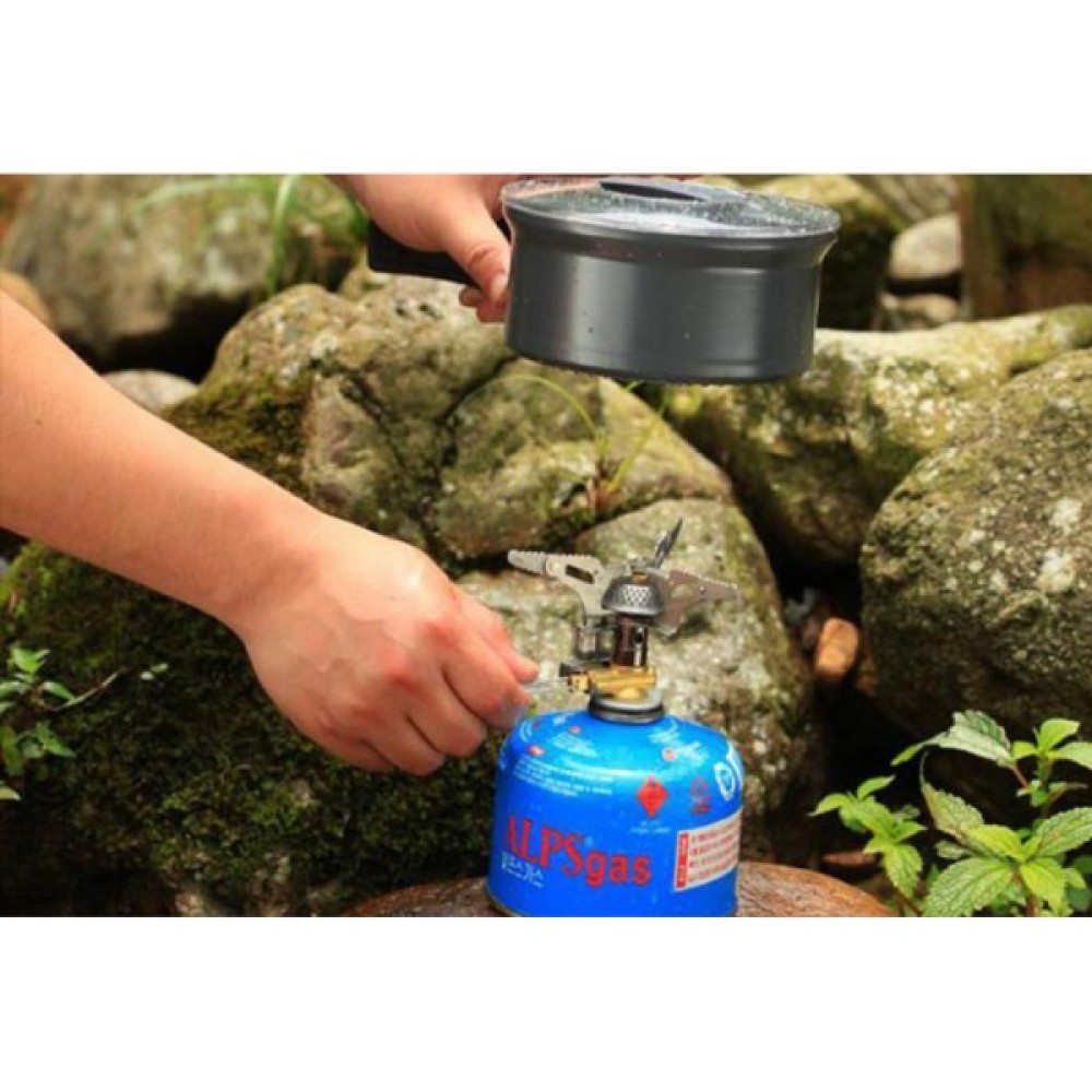 Для упаковки пальника передбачений пластиковий футляр. Розміри виробу складають: 80*68*68 міліметрів. У складеному вигляді розміри досягають 80*57*48 міліметрів. Важить ця модель 170 грам. Вона дуже міцна, практична, портативна. Можна застосовувати пальник для кемпінгу, риболовлі, туристичних походів, пікніків, вилазок, полювання.