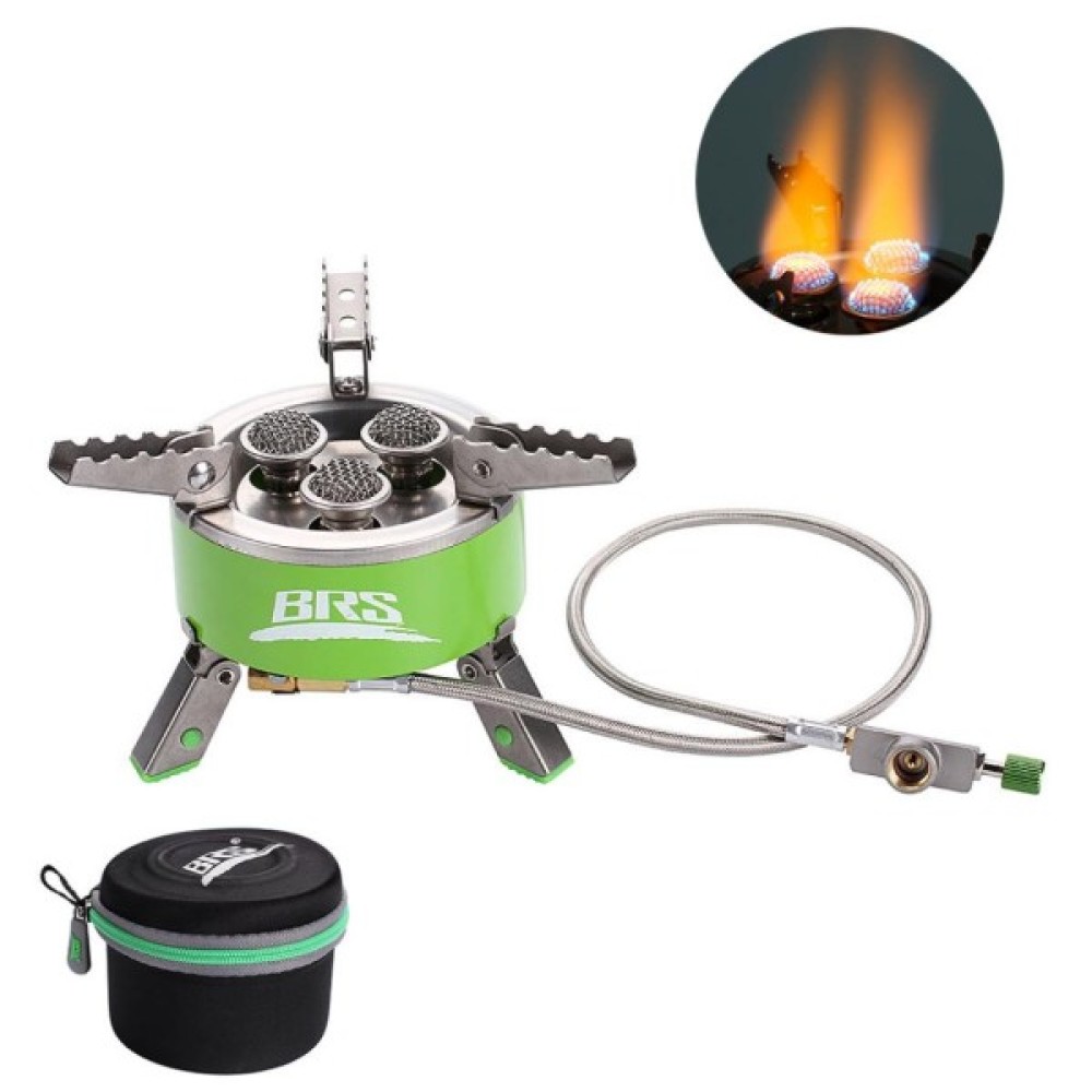 Модель пальника BRS-73 має три конфорки, що працюють синхронно. Це створює масивний потік полум'я, що дозволяє нагріти 1 літр води за менш ніж 4 хвилини. Газа при цьому споживається зовсім небагато. Цей виріб також ви можете застосовувати в якості мініатюрного мангала. Для виготовлення пальника були використані такі матеріали, як алюміній, мідь, сталь, захищена від іржі. Підпал тут зовнішній, а в якості палива використовується скраплений газ. Передбачено також жорсткий чохол в наборі для зручного зберігання і перенесення.