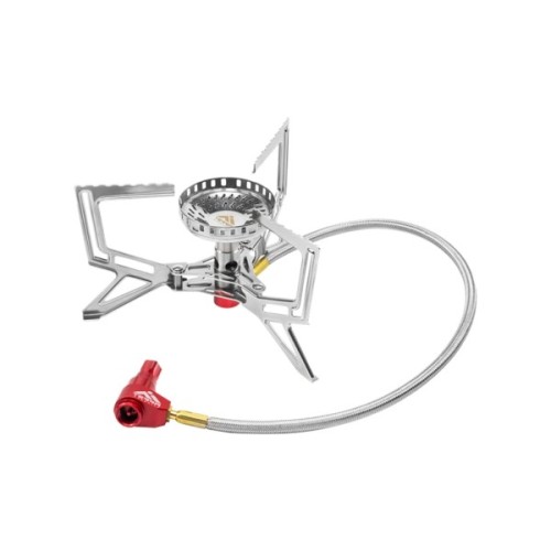 Легкий і компактний портативний газовий пальник зі шлангом довжиною 40 см та з регулятором тиску, який забезпечує потік газу стабільним незалежно від кількості газу в балоні.