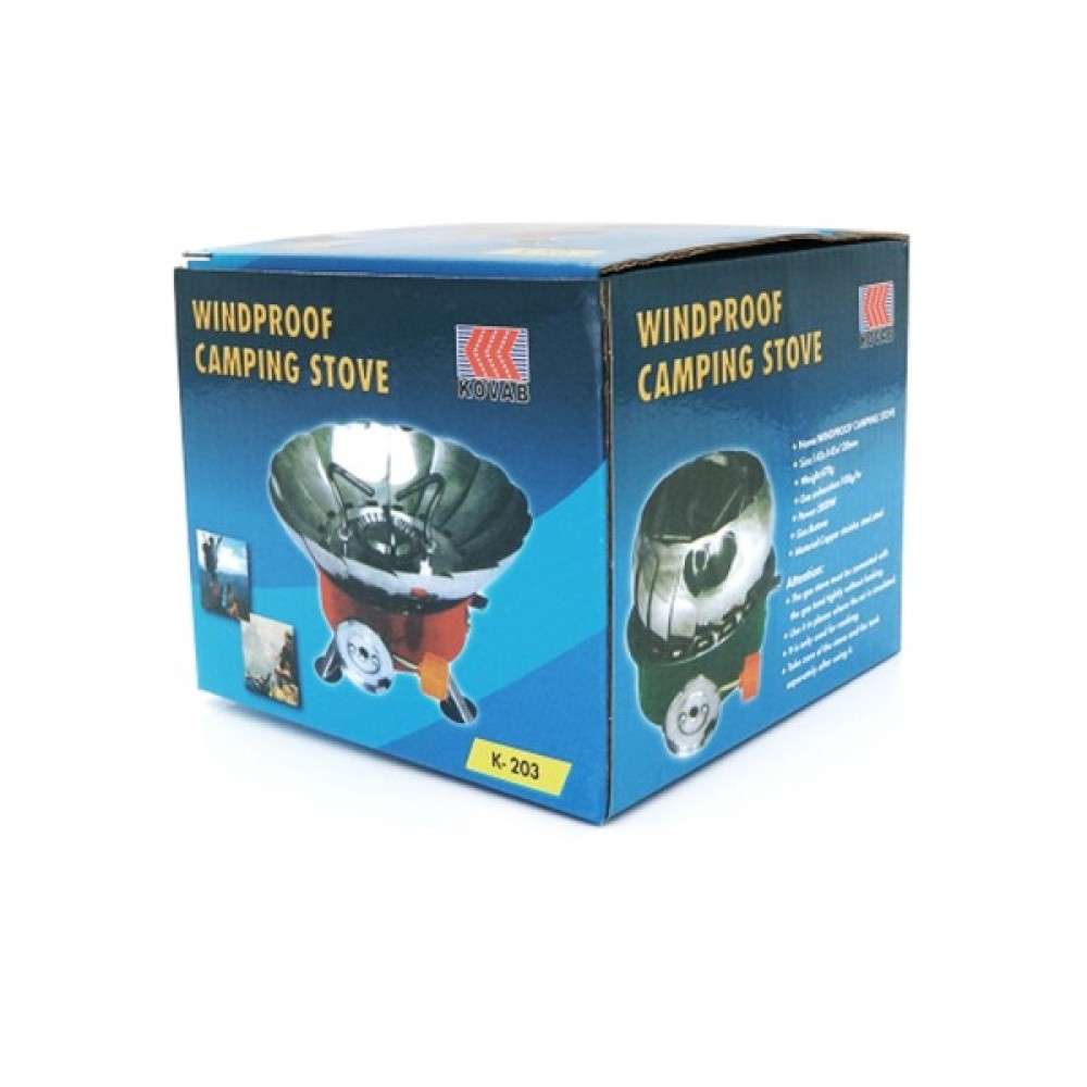Туристичний газовий пальник K-203 з п'єзопідпалом та захистом від вітру під газові балони бутан.
