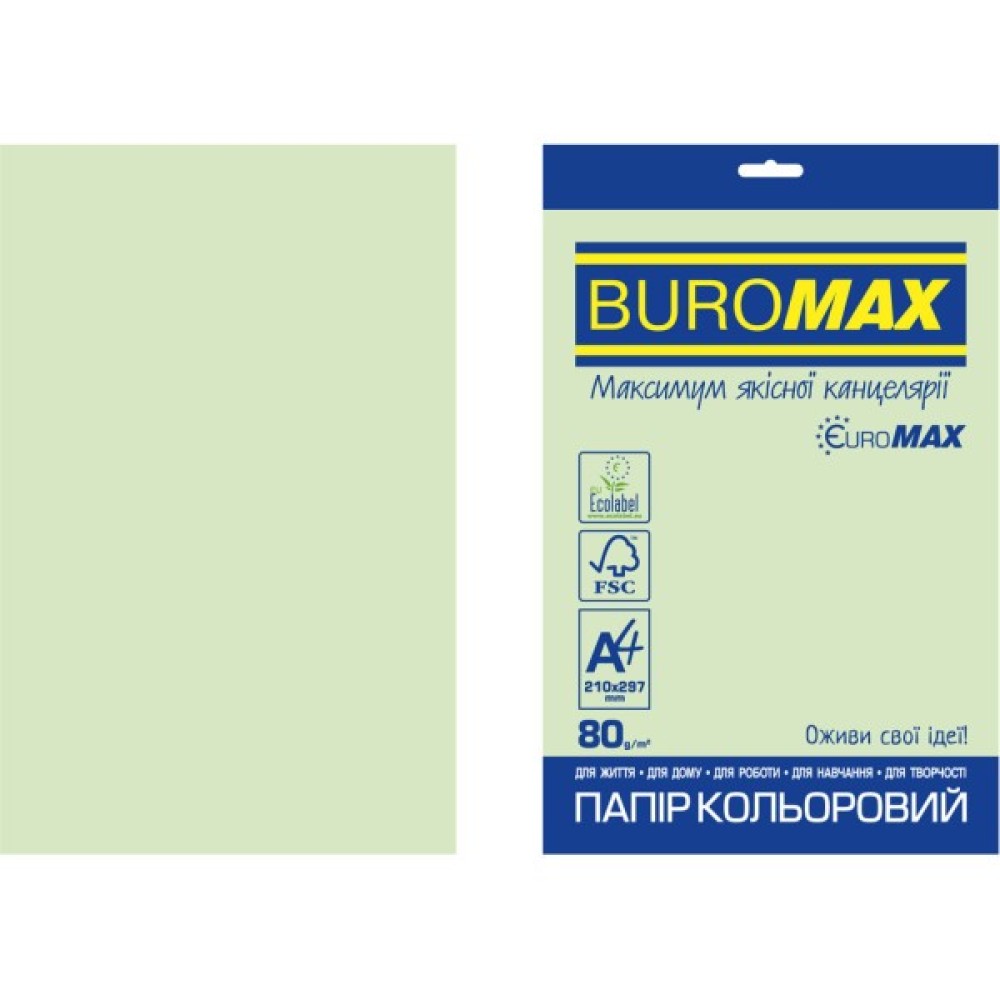 А4, 80g, PASTEL green, 20sh, EUROMAX